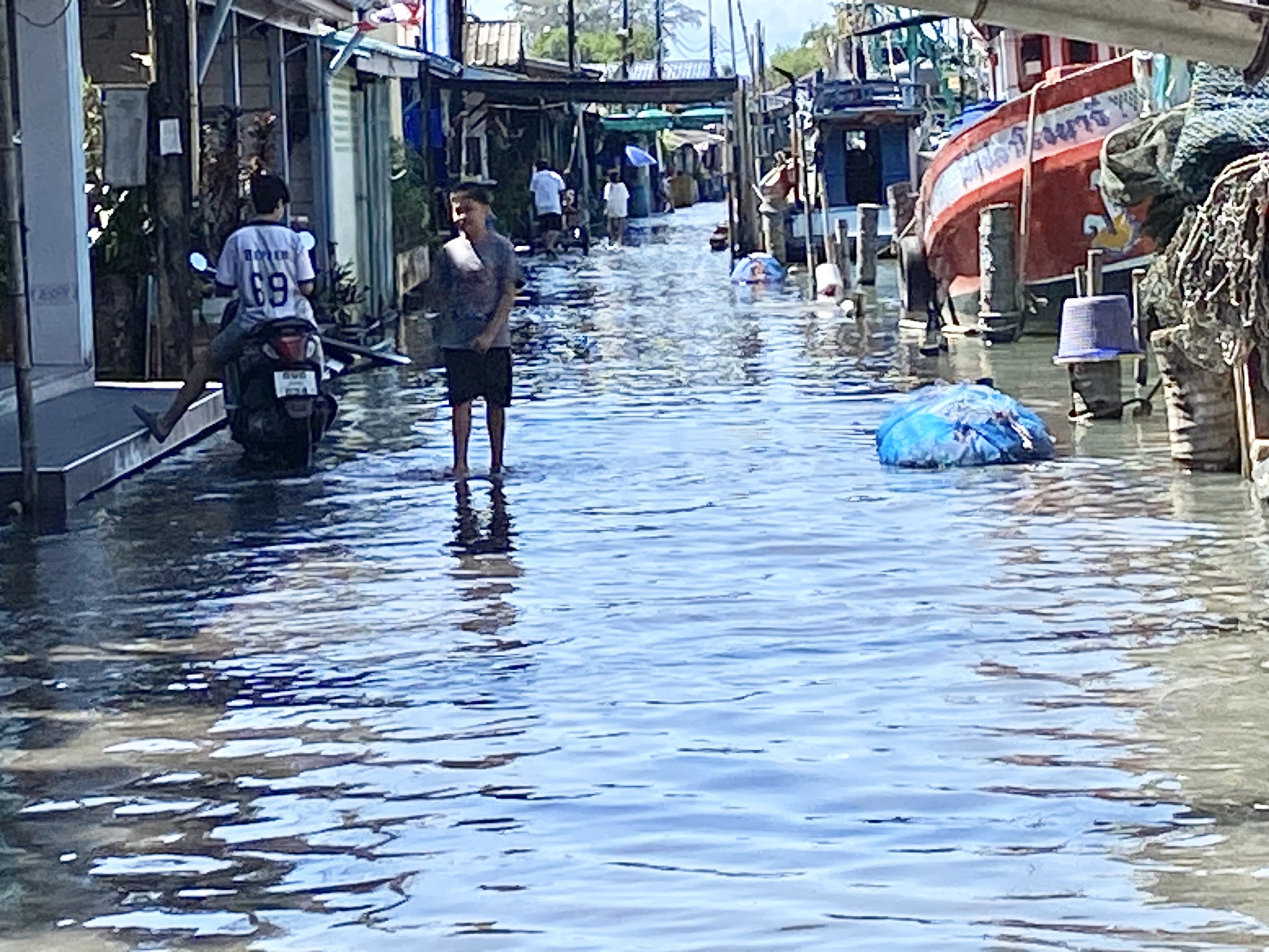 นอกจากนี้น้ำทะเลยังไหลเข้าถึงพื้นบ้านหลายหลัง ชาวบ้านต้องรีบขนย้ายสิ่งของและเครื่องใช้ไฟฟ้าขึ้นที่สูงเพื่อความปลอดภัย