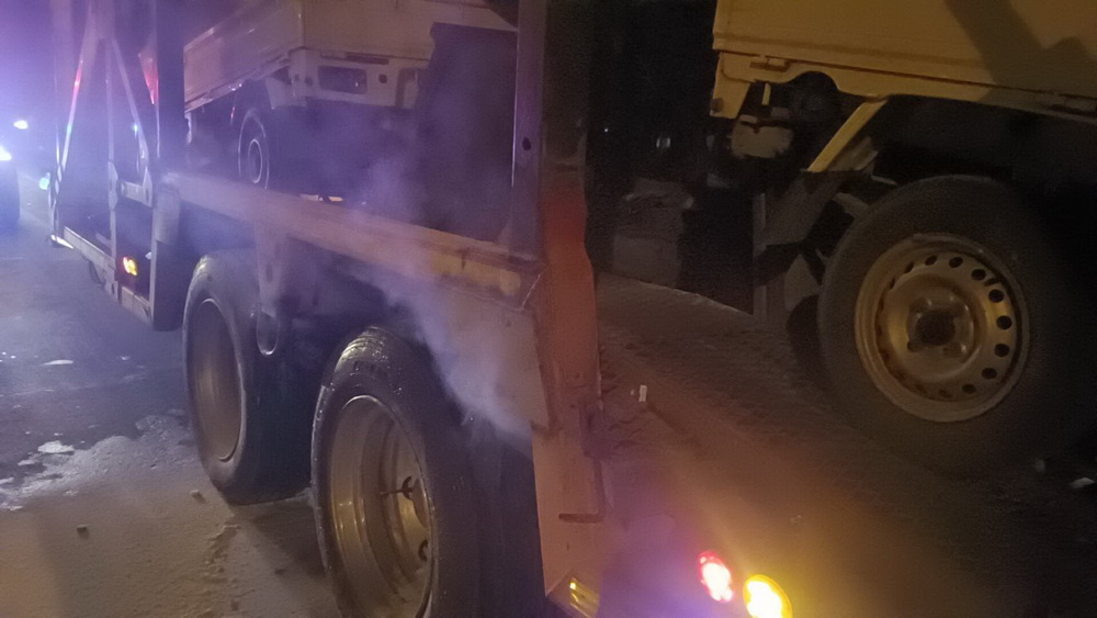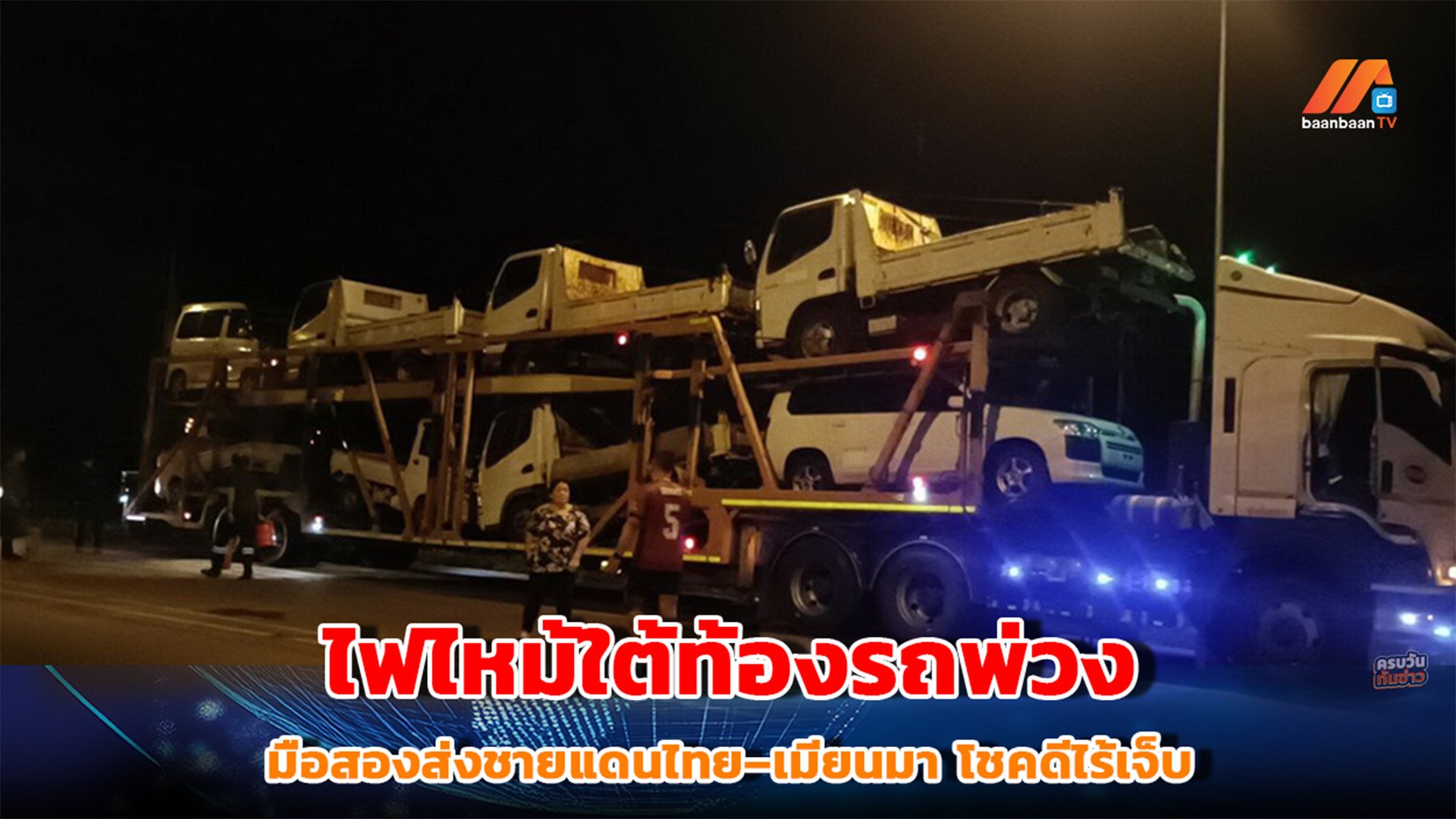 ไฟไหม้ใต้ท้องรถพ่วงบรรทุกรถมือสองส่งชายแดนไทย–เมียนมา โชคดีไร้เจ็บ