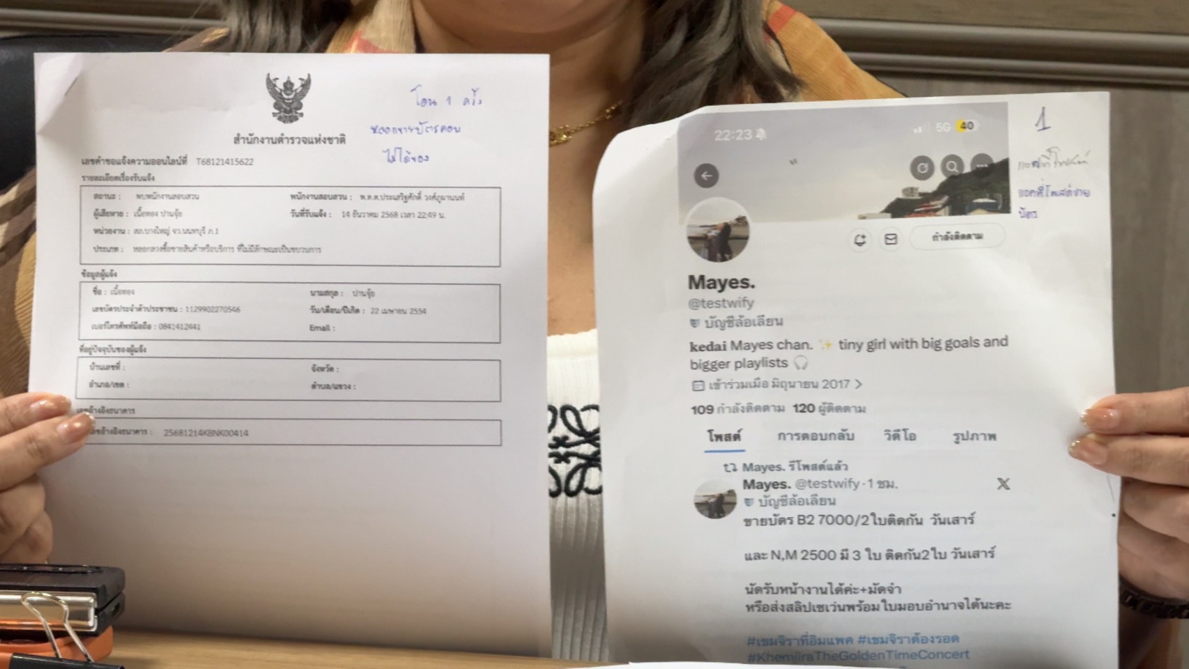 เข้าแจ้งความถูกหลอกขายบัตรคอนเสิร์ต Khemjira The Golden Time Concert (เขมจิราต้องรอด) สูญเงินไป 4,500 บาท