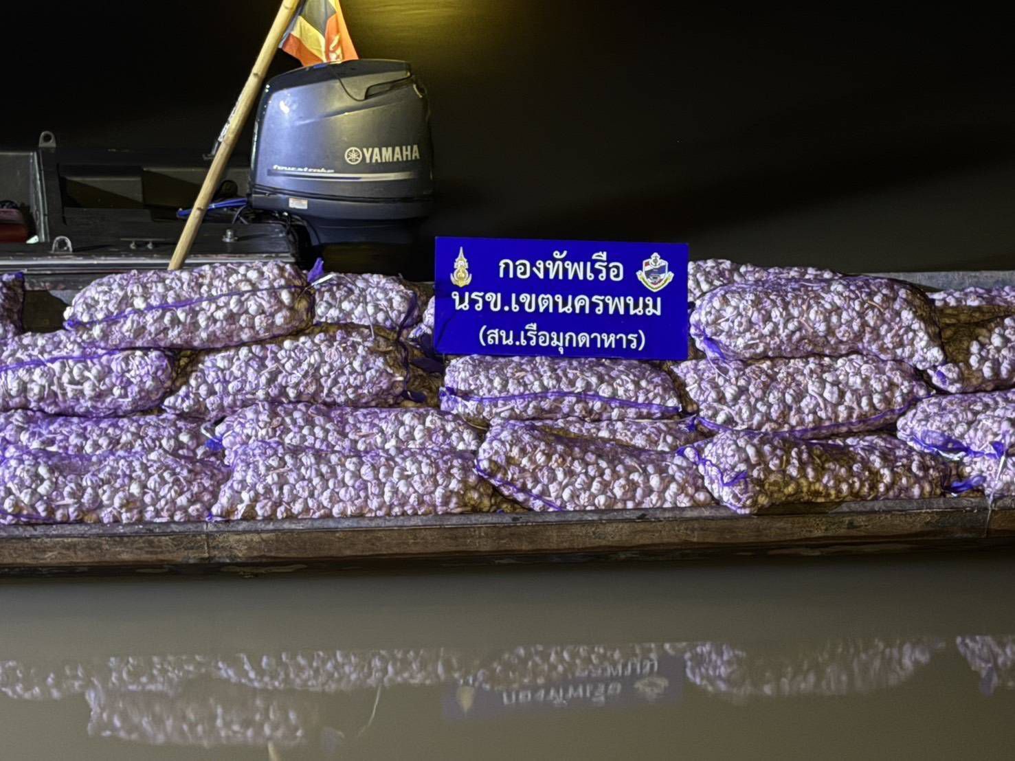 นรข.สกัดจับกระเทียมเถื่อน ลักลอบขนข้ามโขงไม่เสียภาษี