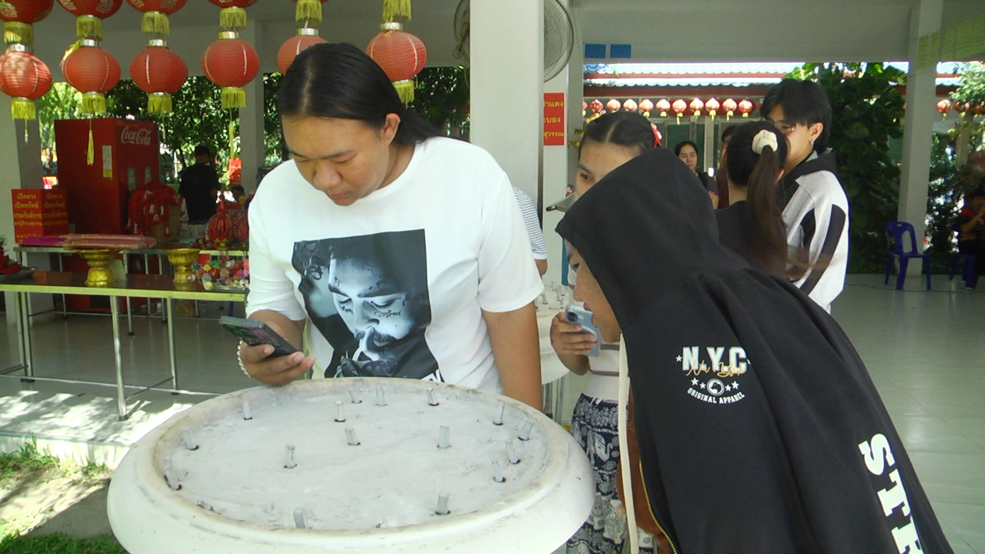 นอกจากนี้ นักท่องเที่ยวยังร่วมพิธีเจิมมือเปิดดวงเศรษฐีกับพระมหามนพ กิตฺติมโน เจ้าอาวาสวัดพังม่วง
