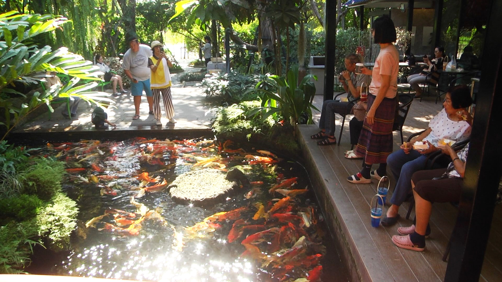 มีปลาคาร์ฟให้นักท่องเที่ยวได้ชม ทำให้วัดพังม่วงเป็นทั้งสถานที่ทำบุญและท่องเที่ยวในช่วงวันหยุดยาว