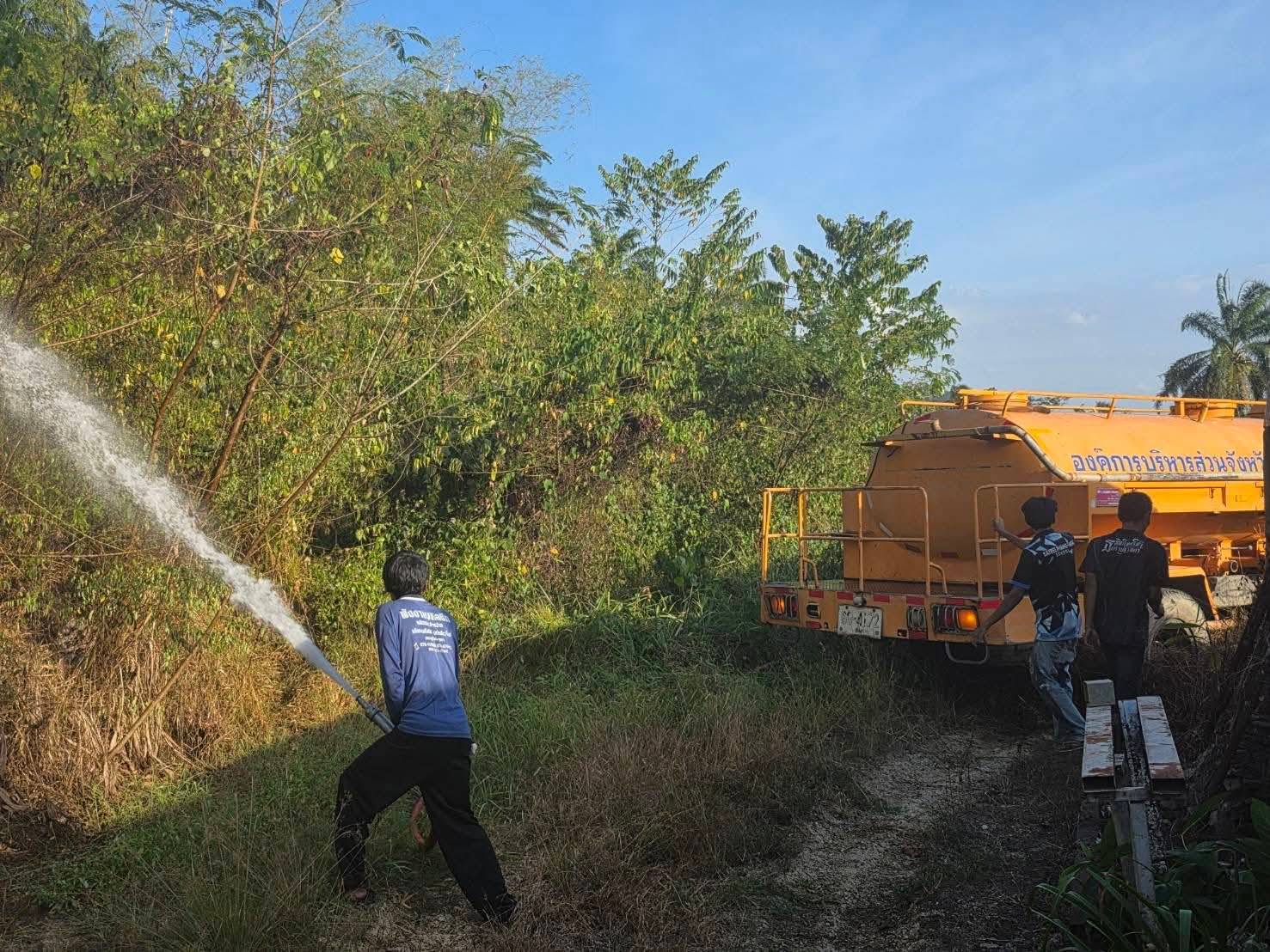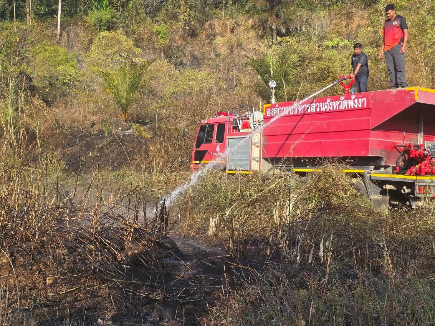อบจ.พังงา เร่งควบคุมไฟไหม้ป่าตำบลตากแดด บ้านเรือนไม่ได้รับผลกระทบ
