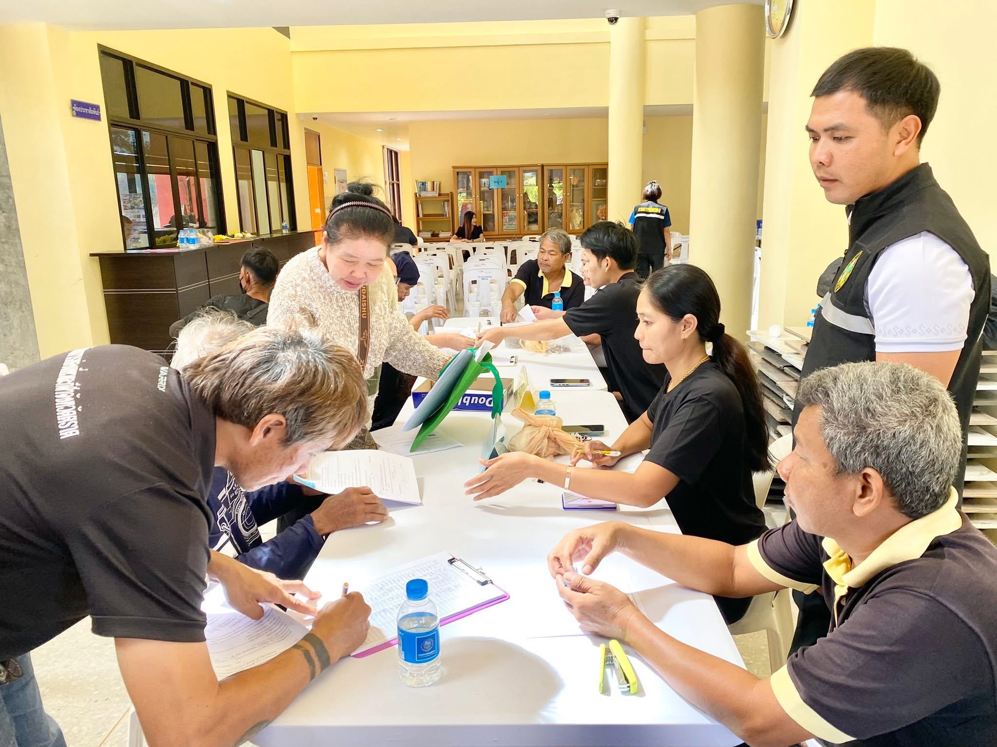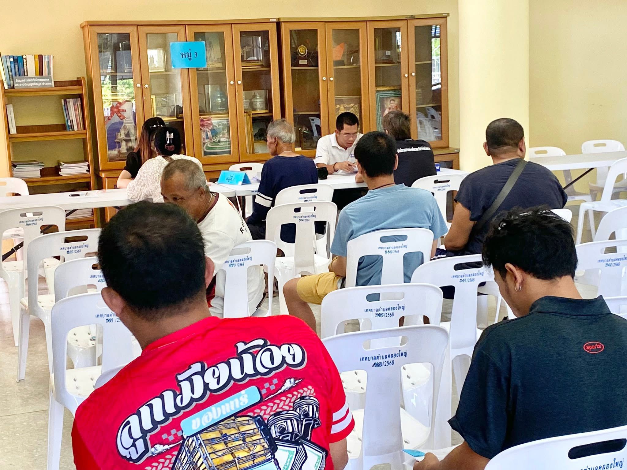 โดยทาง นายอนุพันธ์ เลิศสิทธิกุล นายกเทศมนตรีตำบลคลองใหญ่ พร้อมเจ้าหน้าที่ ตั้งโต๊ะรับลงทะเบียนและตรวจสอบเอกสารประกอบคำร้อง