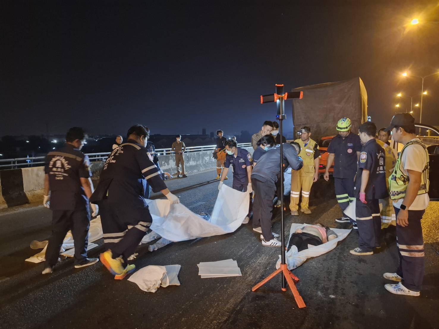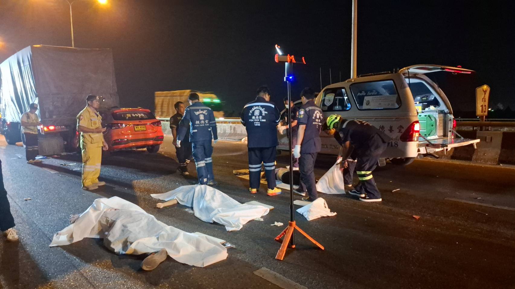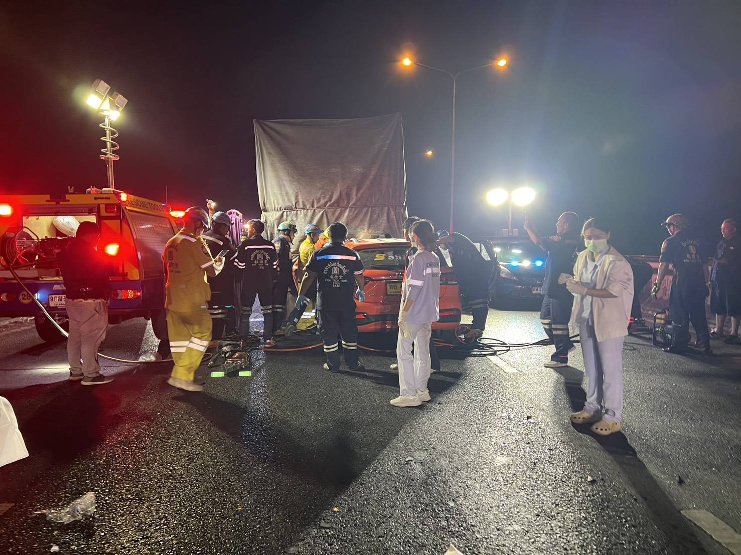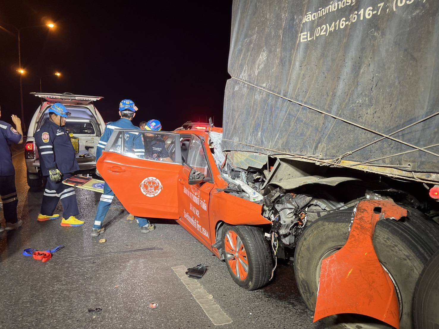 เกิดเหตุอุบัติเหตุสลด รถแท็กซี่เหมาโดยสารพุ่งชนท้ายรถบรรทุก 10 ล้อ บนสะพานปทุมธานี 2 ถนนสาย 345