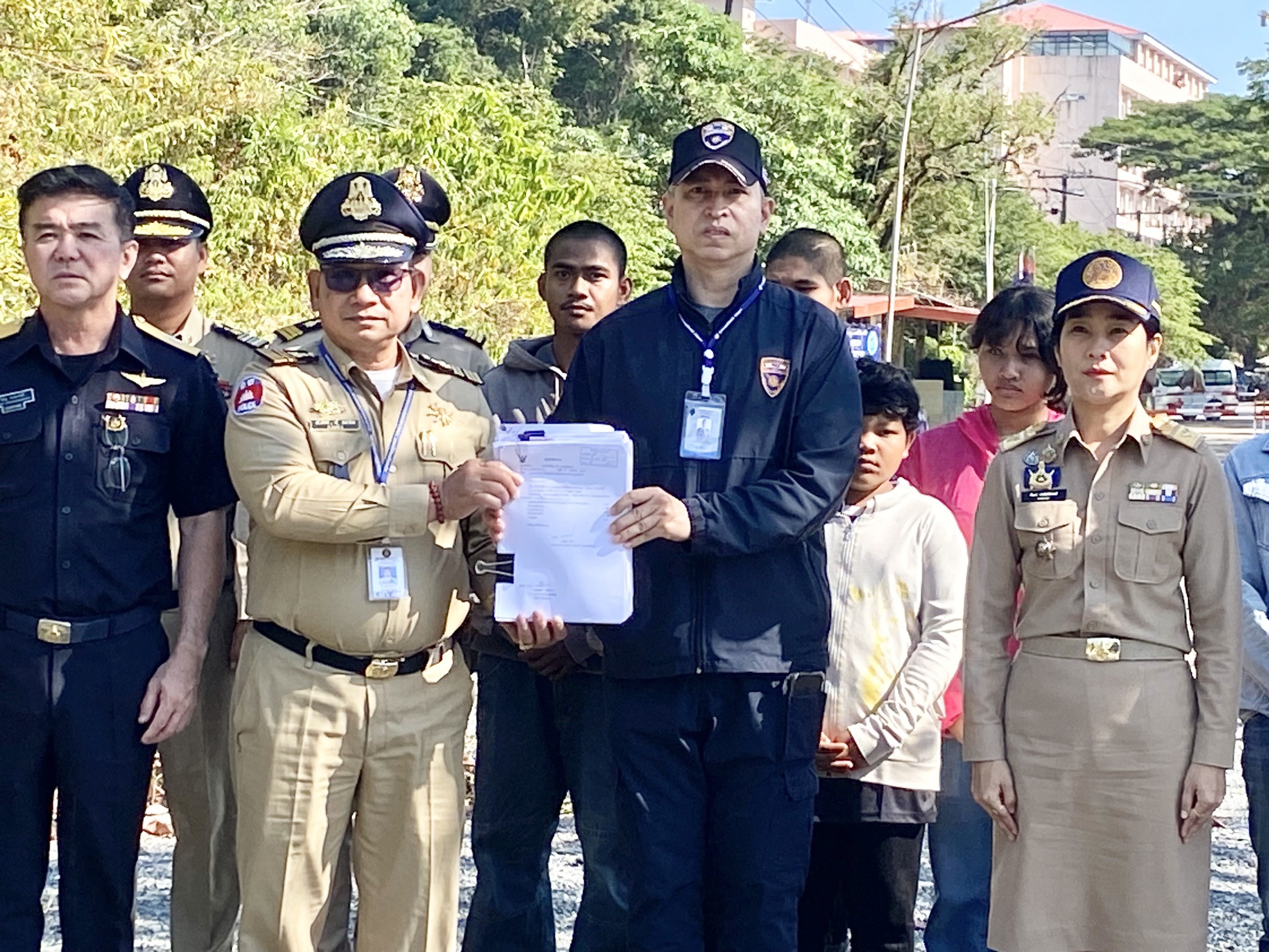 โดยมีเจ้าหน้าที่ฝ่ายกัมพูชารับมอบแรงงานทั้ง 10 ราย ภายใต้การอำนวยการของ พ.ต.อ.กิตติพรรธ เป้าเปี่ยนทรัพย์