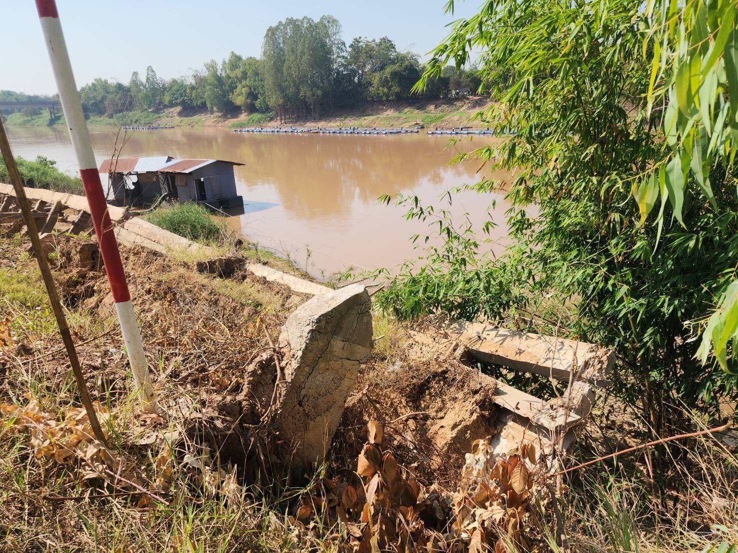 การตรวจสอบพบว่ากำแพงกันตลิ่งทรุดตัวเสียหายยาวประมาณ 38 เมตร จากความยาวทั้งหมด 40 เมตร