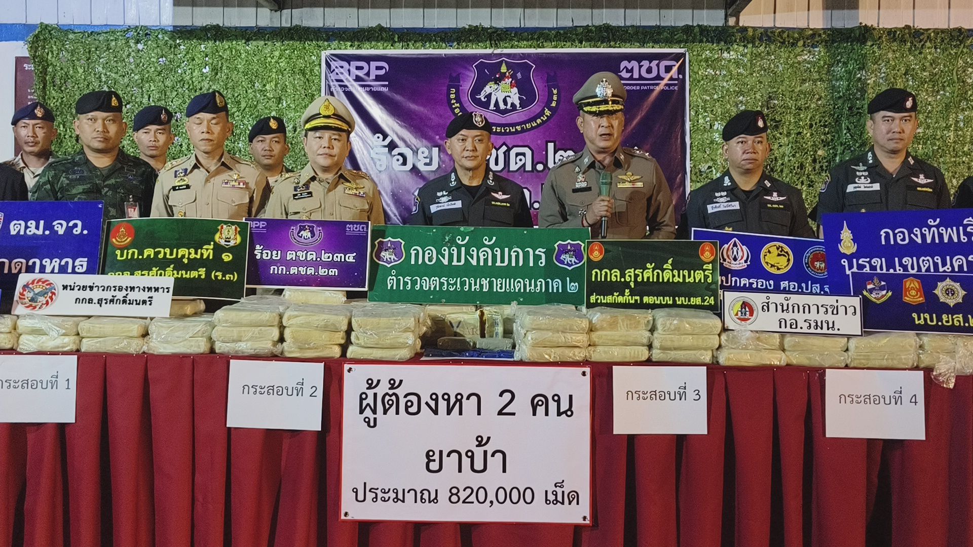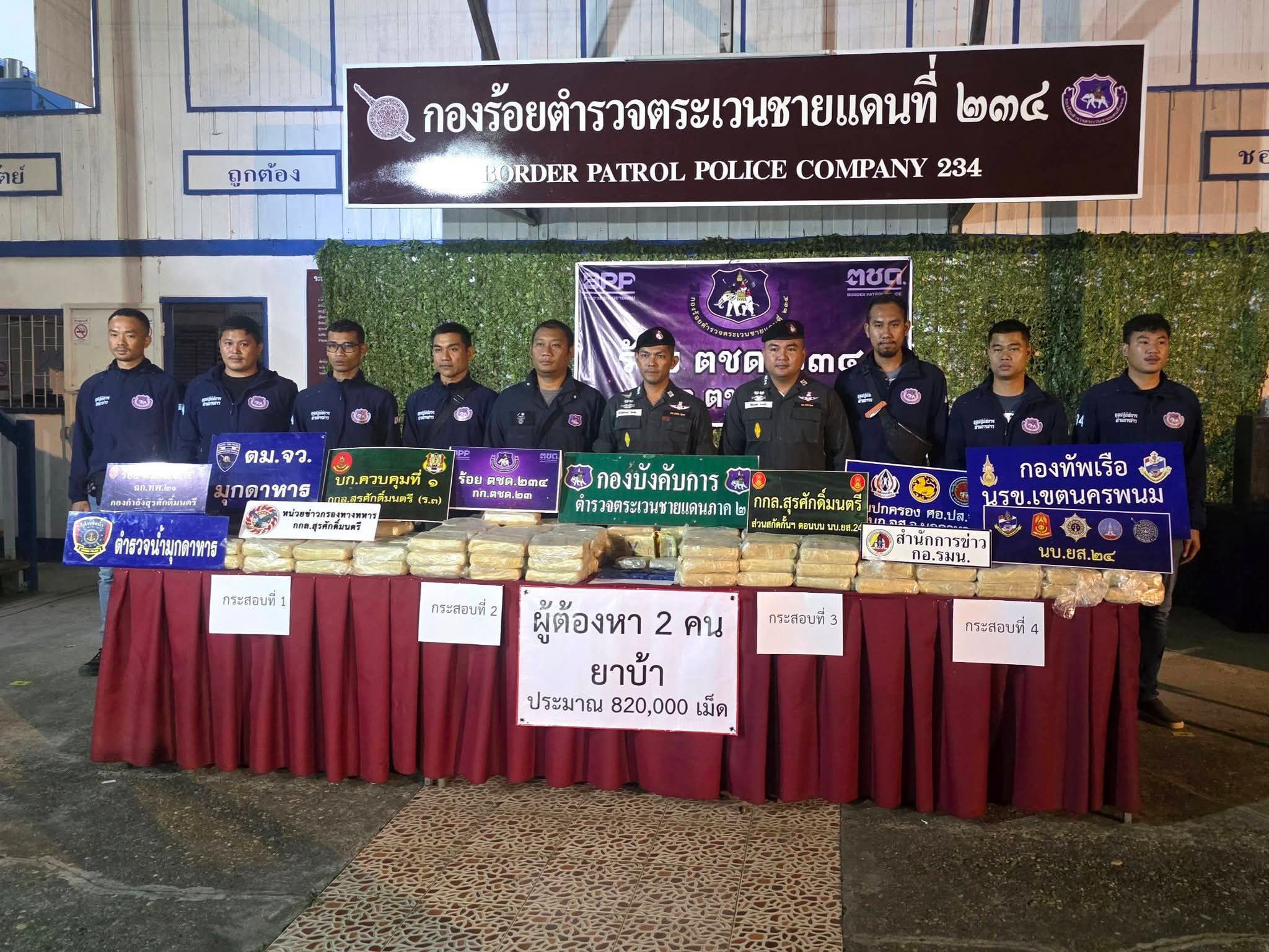พร้อมของกลางยาบ้าล็อตใหม่กว่า 820,000 เม็ด หลังลักลอบลำเลียงเข้าประเทศตามแนวชายแดนลุ่มแม่น้ำโขง จังหวัดมุกดาหาร