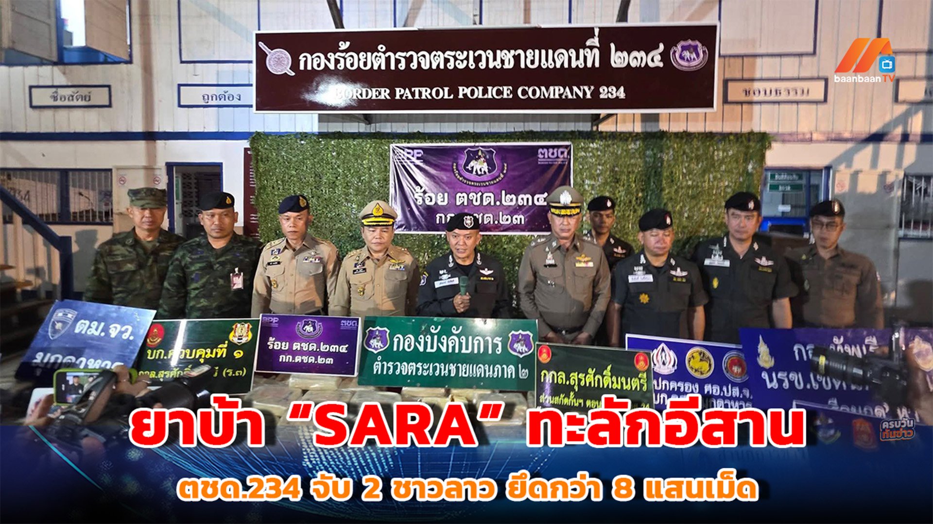 มุกดาหารผงะ! ยาบ้าล็อตใหม่โลโก้ “SARA” ทะลักอีสาน ตชด.234 จับ 2 ชาวลาว ยึดกว่า 8 แสนเม็ด