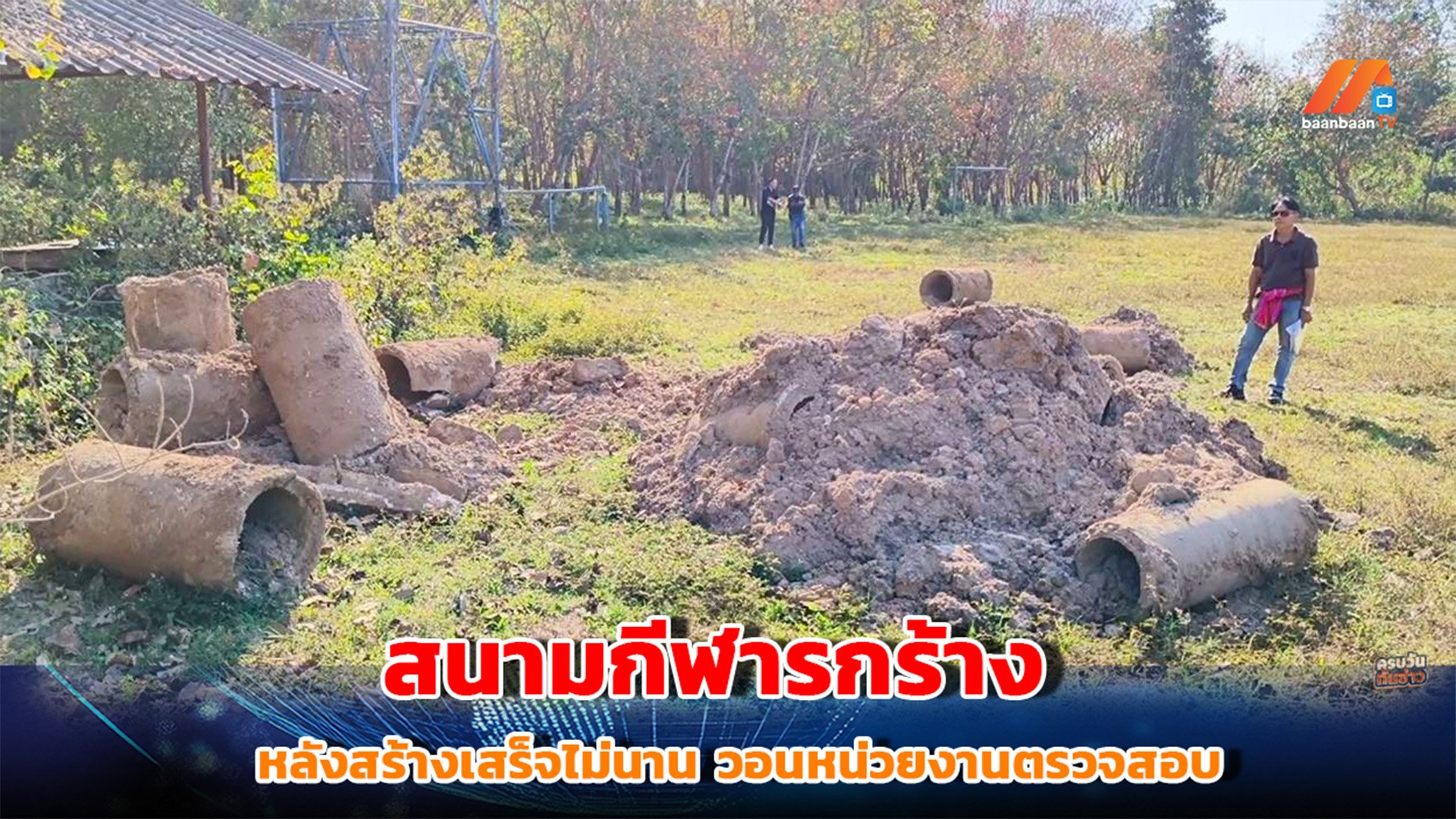 นอกจากนี้ ยังพบการนำดินที่ปะปนเศษปูน คอนกรีต เหล็ก และวัสดุก่อสร้าง มาถมทิ้งไว้ทั่วสนาม