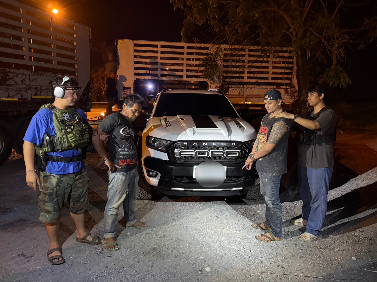 ต่อมาในช่วงเช้ามืด พบผู้ต้องสงสัยช่วยกันขนย้ายกระสอบจากรถพ่วงไปยังรถกระบะ