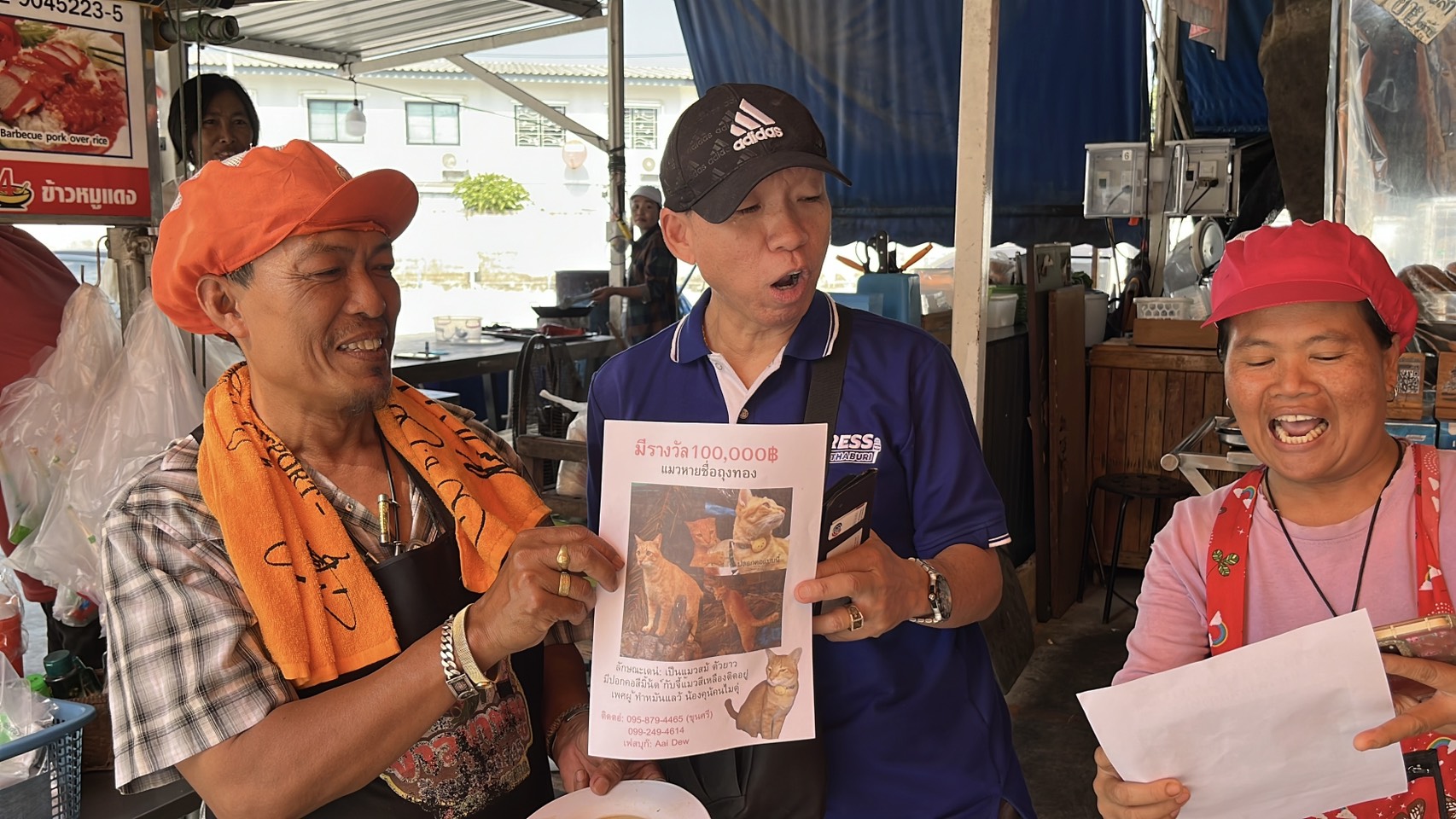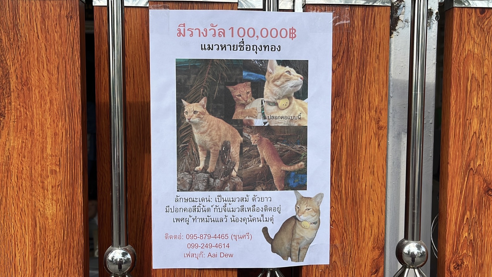 และชุมชนในรัศมีหลายกิโลเมตร พร้อมตั้งรางวัลสำหรับผู้ที่นำแมวมาส่งคืนสูงถึง 100,000 บาท