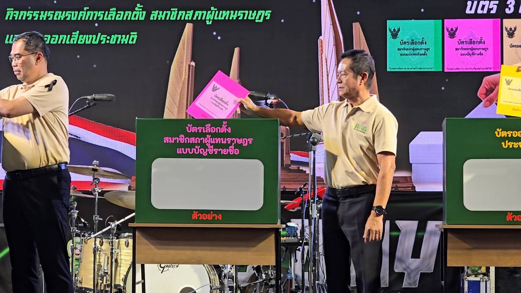 บัตรสีเขียว เลือก ส.ส.แบบแบ่งเขต และ บัตรสีเหลือง สำหรับการออกเสียงประชามติรัฐธรรมนูญฉบับใหม่