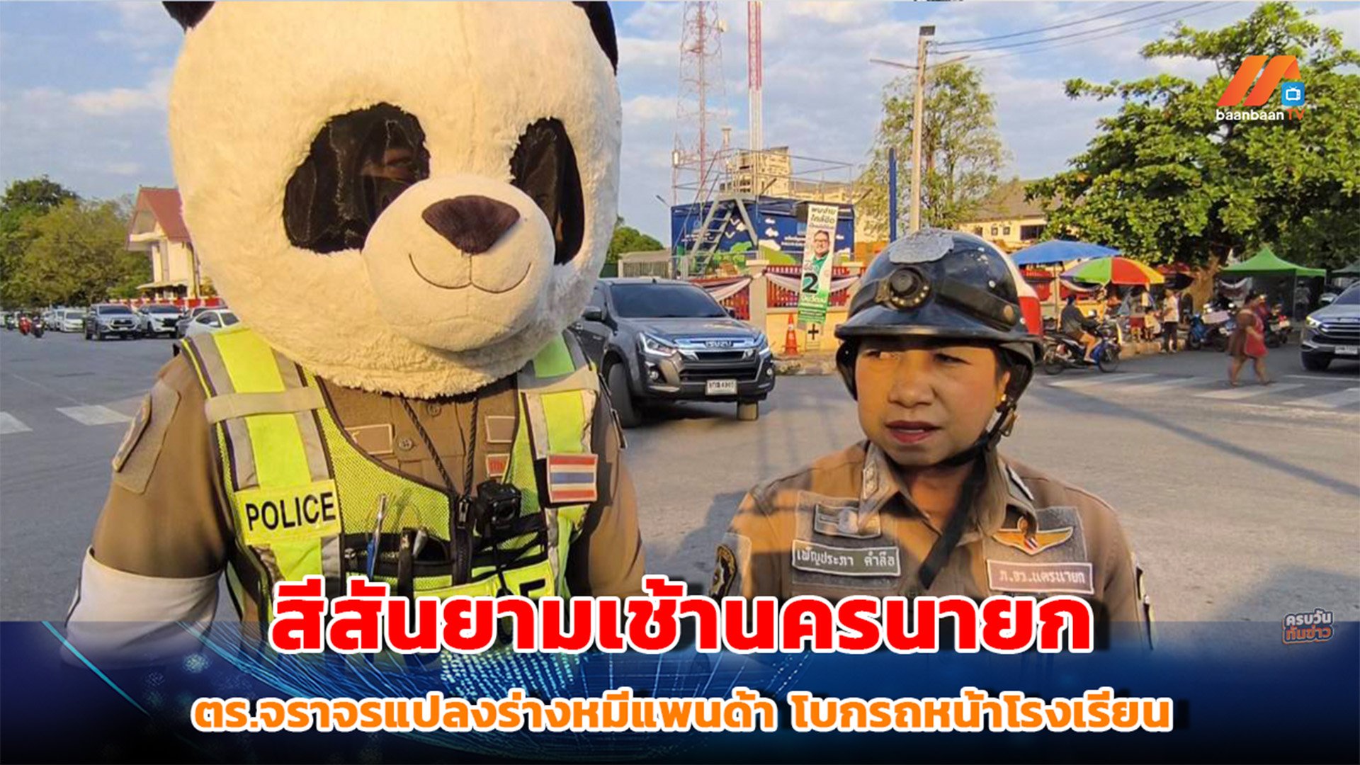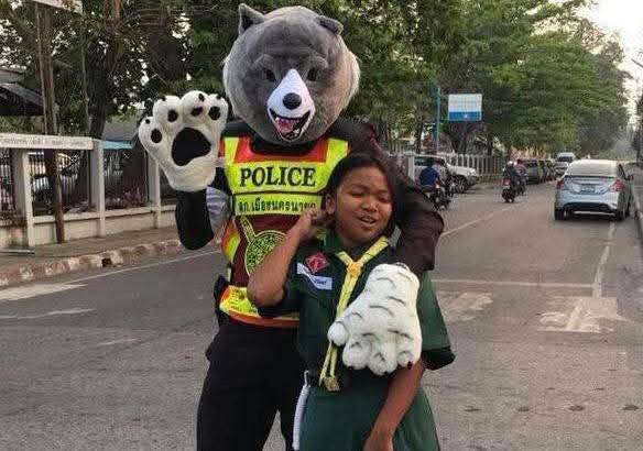 สีสันยามเช้านครนายก ตร.จราจรแปลงร่างหมีแพนด้า โบกรถหน้าโรงเรียน ครบ 7 ปี