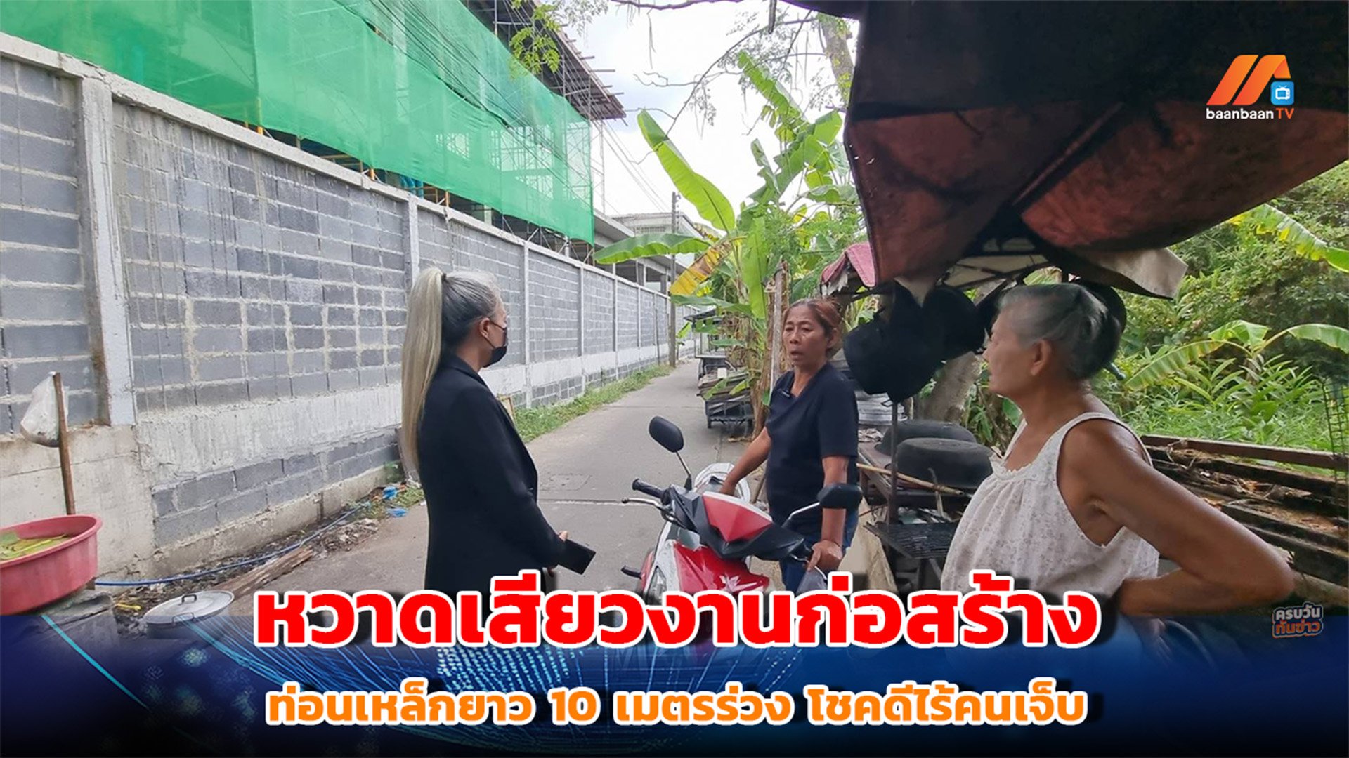 โดยท่อนเหล็กสำหรับงานเทปูน ความยาวประมาณ 10 เมตร หล่นลงมาเฉียดจุดที่ชาวบ้านนั่งอยู่