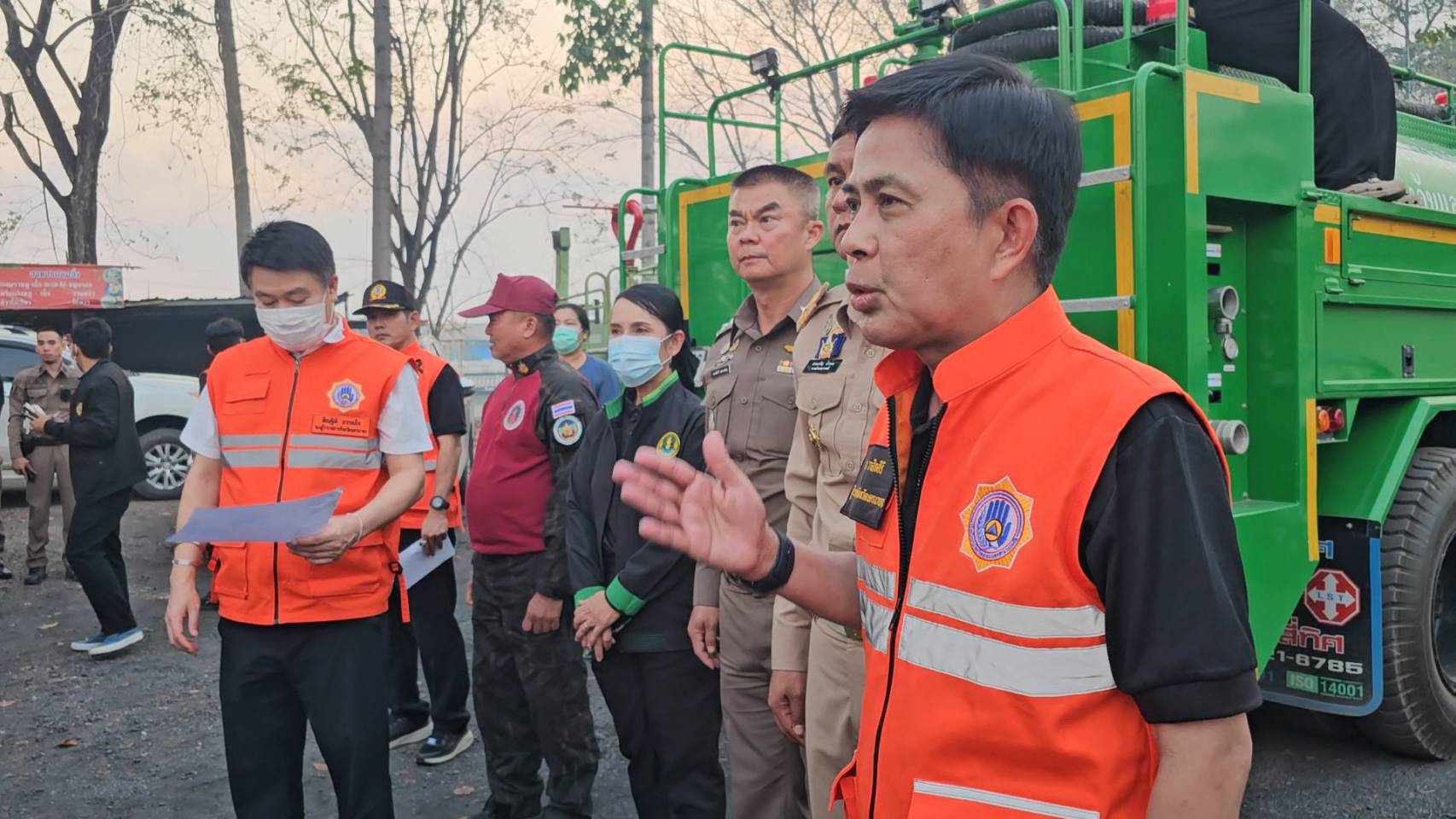 จังหวัดนครนายกได้บูรณาการกำลังเจ้าหน้าที่จากหลายหน่วยงาน ระดมรถดับเพลิงและกำลังพลเข้าควบคุมสถานการณ์อย่างต่อเนื่อง