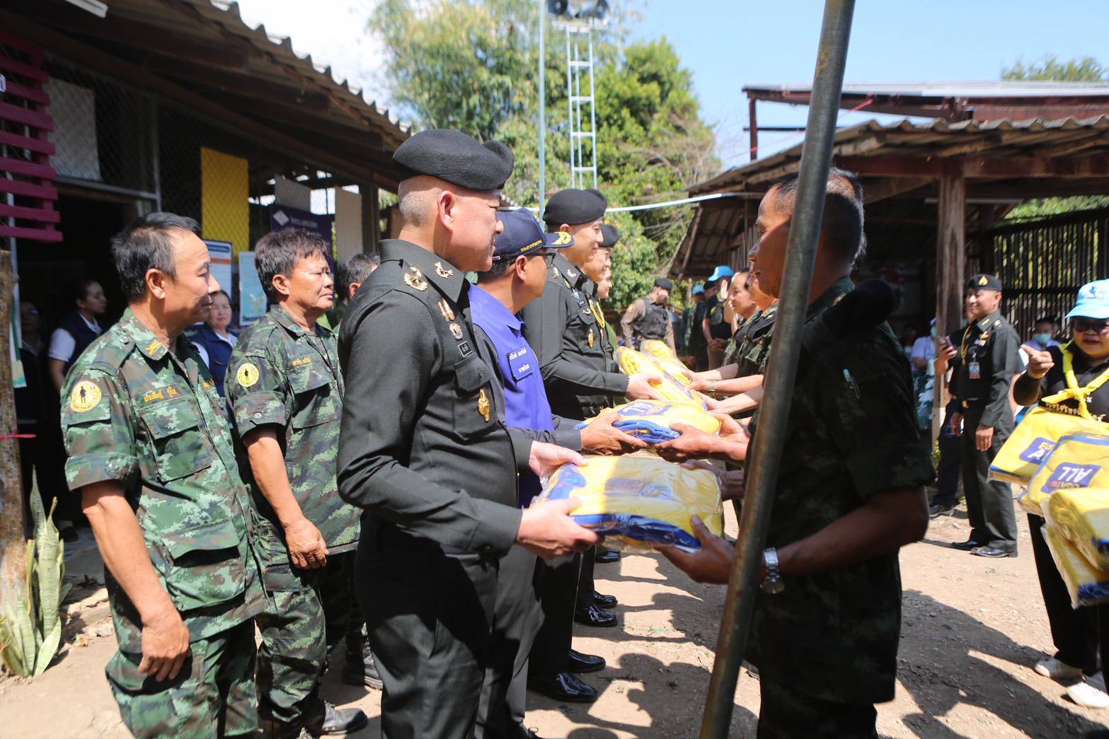 พร้อมมอบถุงยังชีพกองทัพบกและ กฟผ.แม่เมาะ รวมทั้งให้ทีมแพทย์จากโรงพยาบาลค่ายสุรศักดิ์มนตรีตรวจสุขภาพและให้คำแนะนำการดูแลตนเอง