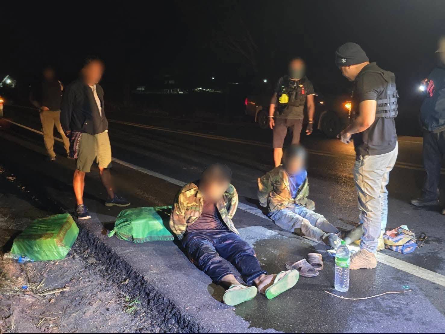 ช่วงเช้ามืดพบชายต้องสงสัย 3 คน เฝ้ากระสอบต้องสงสัยอยู่ริมถนน เมื่อแสดงตัวเข้าตรวจสอบ