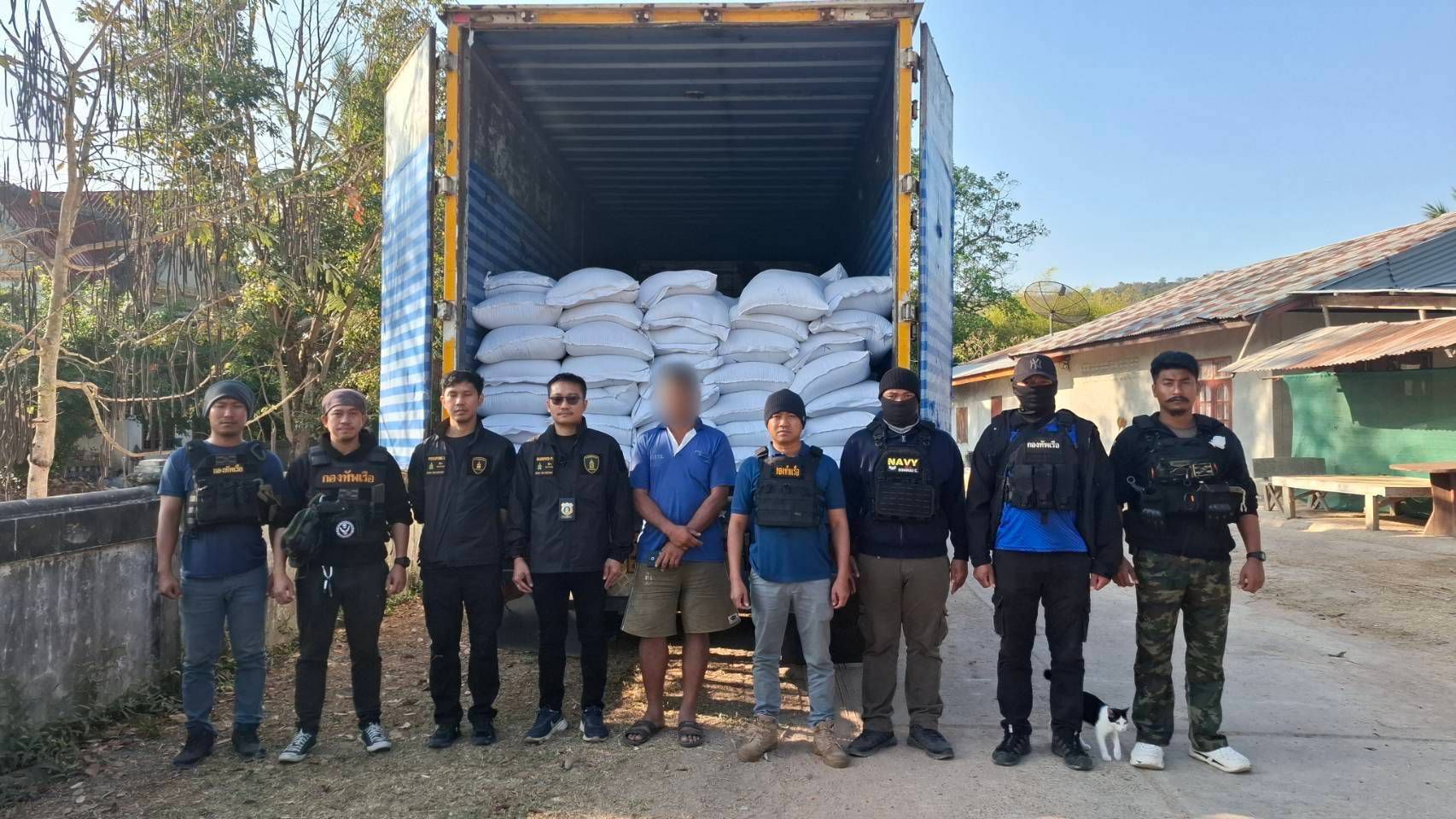 นรข.มุกดาหารสกัดรถ 12 ล้อ ลอบขนข้าวไรซ์เบอร์รี่เถื่อน 15 ตัน