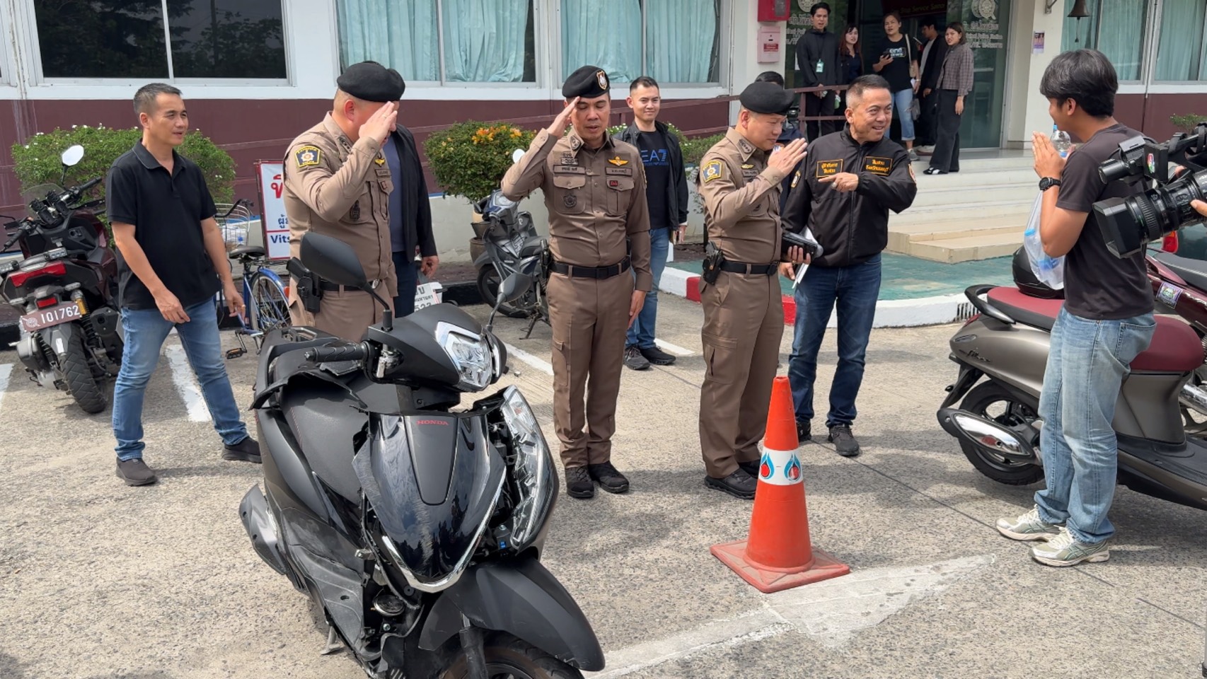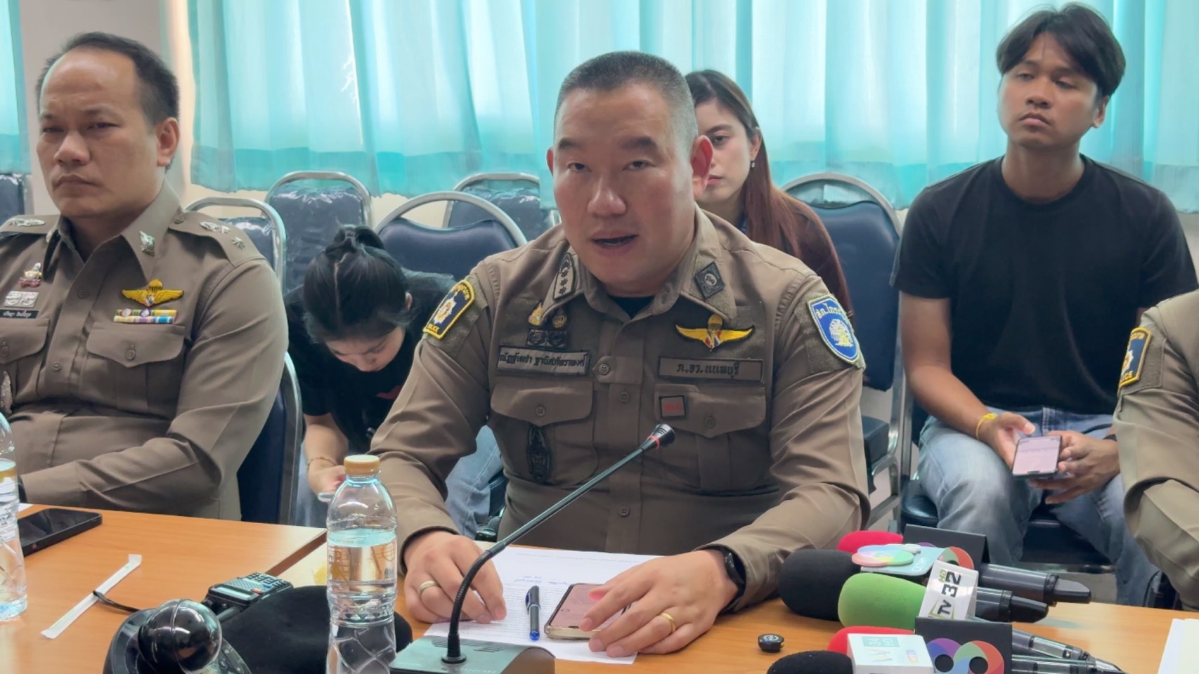 เจ้าหน้าที่ตำรวจ สภ.ไทรน้อย จังหวัดนนทบุรี แถลงความคืบหน้าคดีกลุ่มวัยรุ่นใช้อาวุธปืนยิงถล่มบ้านคู่อริในหมู่บ้านนันทิชา ตำบลไทรน้อย