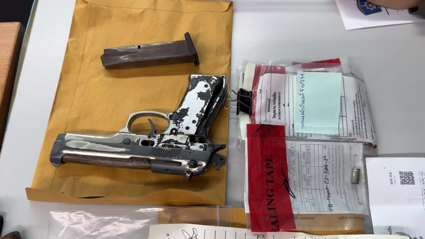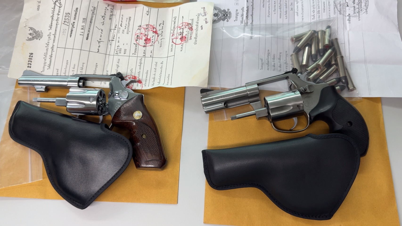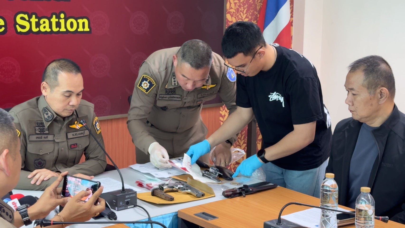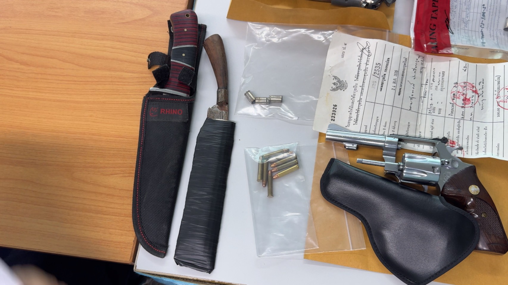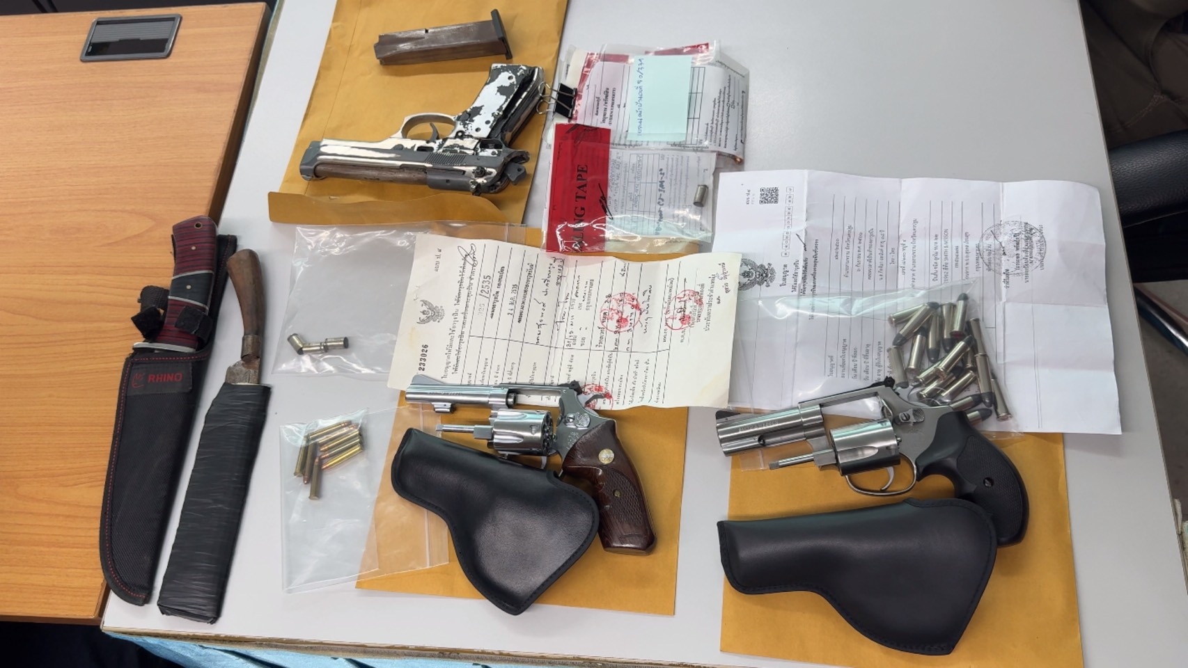 พกพาอาวุธปืนไปในที่สาธารณะโดยไม่มีเหตุอันควร และ ซ่องโจร พร้อมดำเนินคดีตามกฎหมายต่อไป