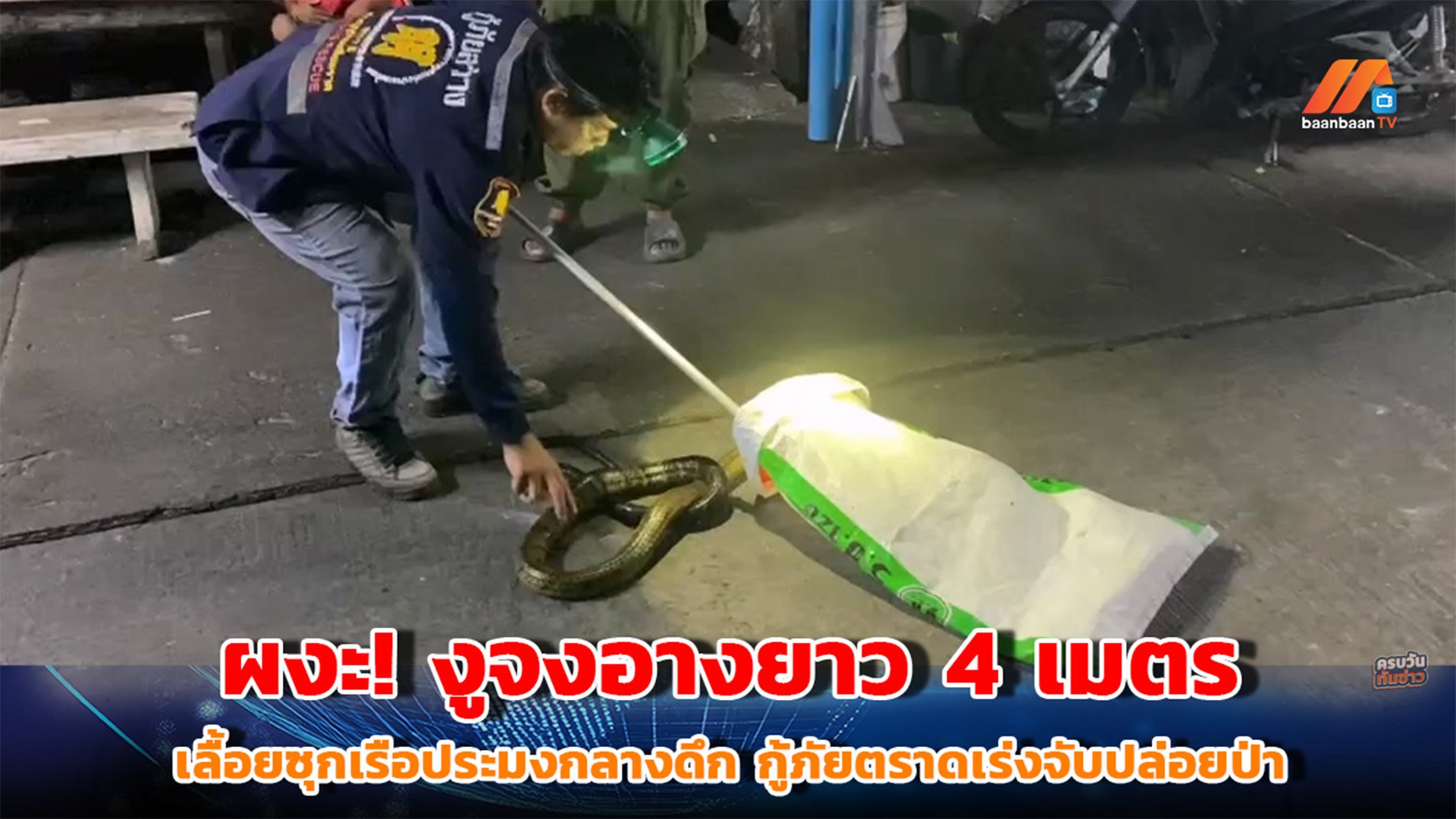 เกิดเหตุระทึกกลางดึก ชาวบ้านผวา หลังพบ งูจงอางขนาดใหญ่ยาวประมาณ 4 เมตร