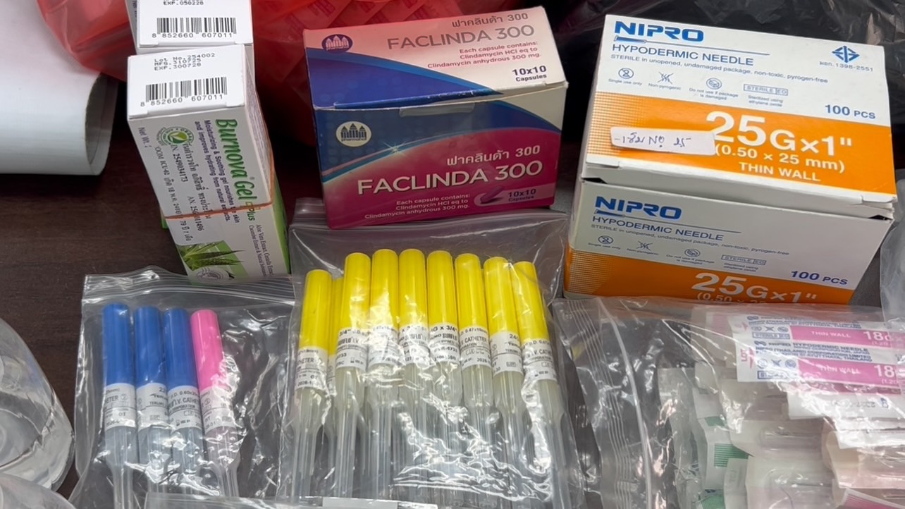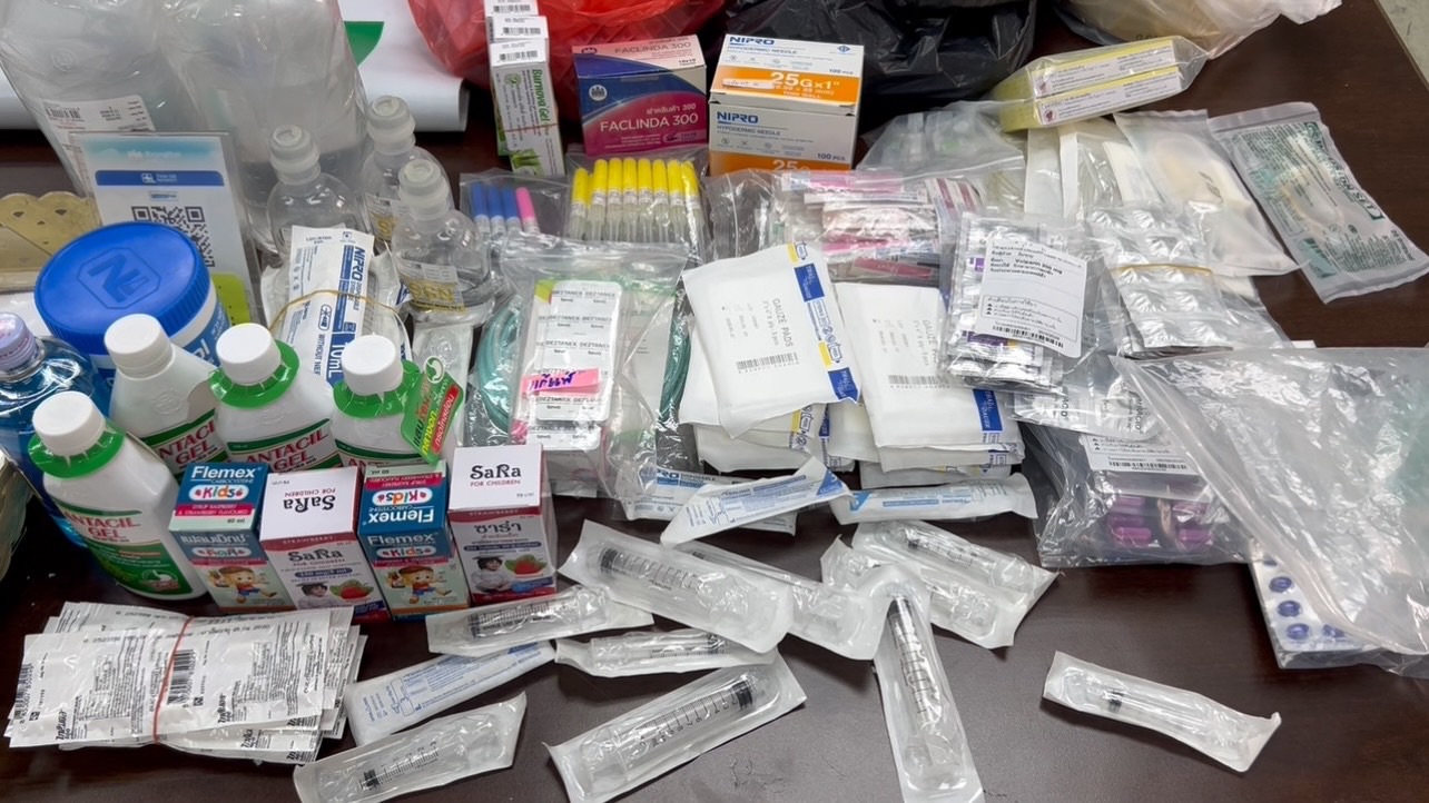 เจ้าหน้าที่ตรวจยึดของกลางภายในคลินิกกว่า 170 รายการ ทั้งใบรับรองแพทย์ อุปกรณ์ทางการแพทย์ ยา และเวชภัณฑ์ต่าง ๆ