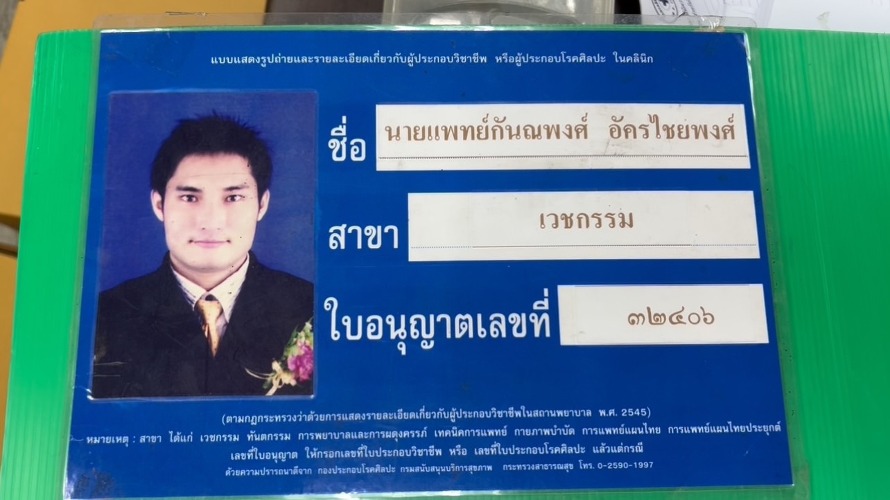 เมื่อเจ้าหน้าที่ตรวจสอบเอกสารไม่พบใบอนุญาตเปิดสถานพยาบาล และ ไม่มีใบประกอบวิชาชีพเวชกรรม