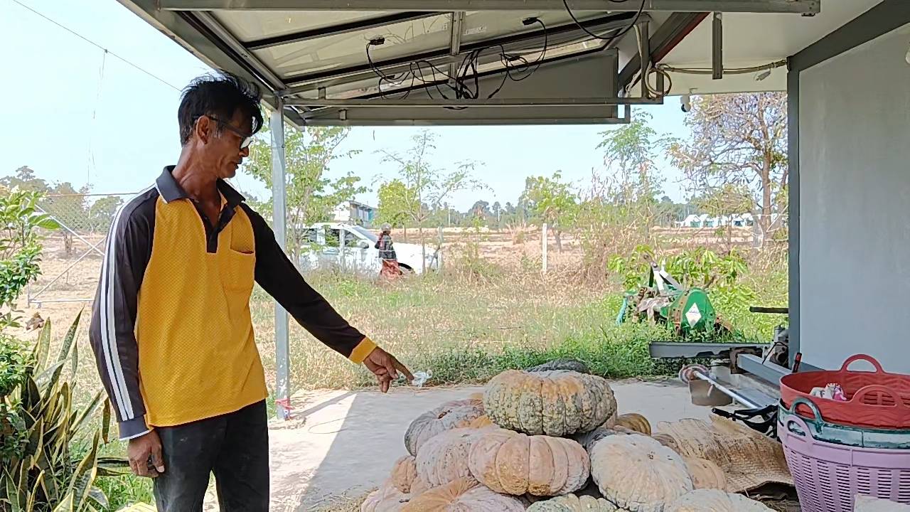 ค่าปุ๋ยเคมีอีกกว่าหมื่นบาท รวมถึงค่าแรงงาน รวมต้นทุนกว่า 30,000 บาท โดยสามารถขายฟักทองไปแล้วประมาณ 9 ตัน