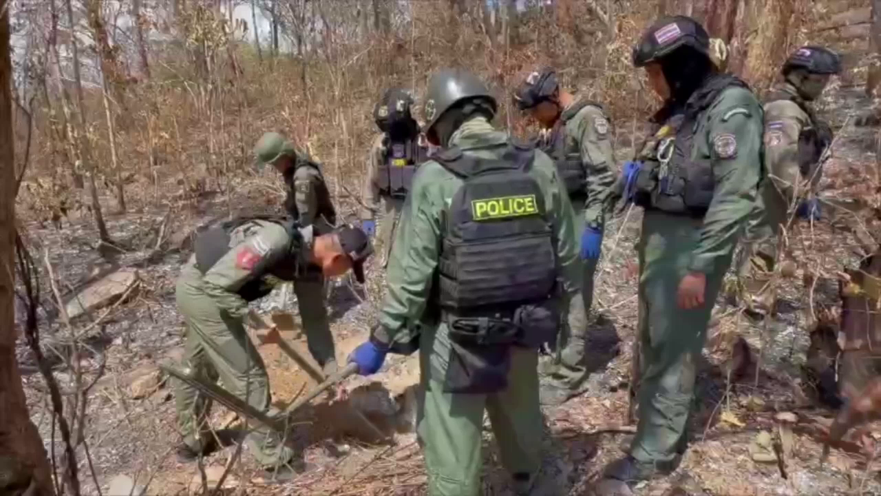 เจ้าหน้าที่ตำรวจตระเวนชายแดนที่ 22 พร้อมชุดเก็บกู้และทำลายวัตถุระเบิด หรือ EOD จังหวัดศรีสะเกษ