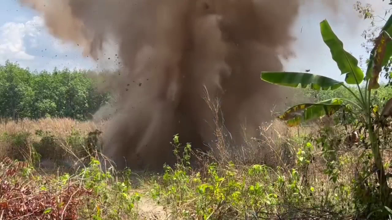 ระทึก! รถขุดมันตักกระสุน ปรส.82 โผล่กลางไร่ ศรีสะเกษ EOD เร่งทำลาย