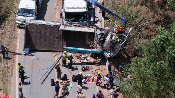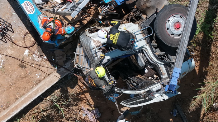 สามารถนำส่งโรงพยาบาลได้ 2 ราย ส่วนอีก 1 รายติดอยู่ภายในซากรถ เจ้าหน้าที่ใช้เครื่องตัดถ่างช่วยเหลือออกมาได้อย่างปลอดภัยก่อนนำส่งรักษา