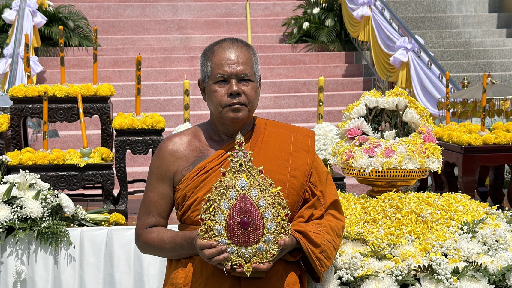 เพื่อนำไปประดิษฐานบนหน้าผากองค์พระ ท่ามกลางความศรัทธาของประชาชนที่ร่วมพนมมืออธิษฐานและบันทึกภาพไว้เป็นที่ระลึก