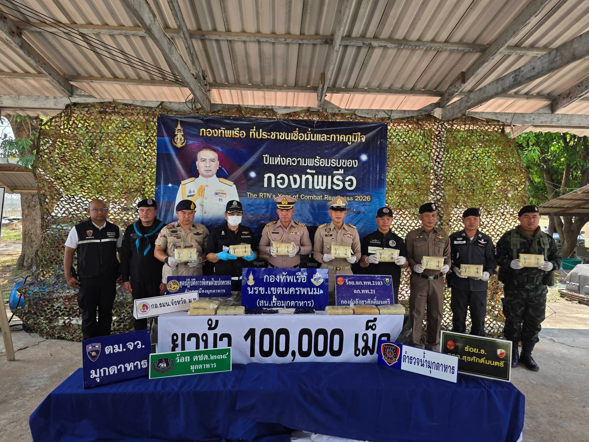นรข.มุกดาหาร สกัดยาบ้า 1 แสนเม็ด แก๊งค้ายาใช้เรือหาปลาพรางขนข้ามโขง