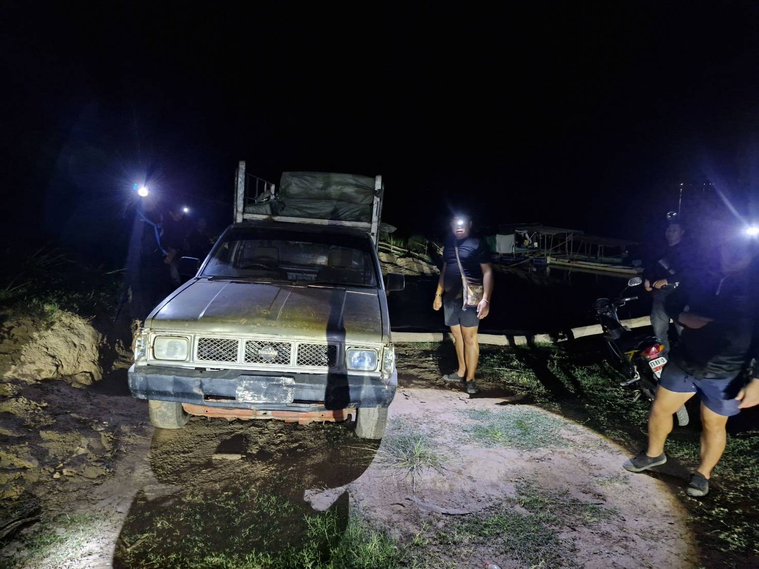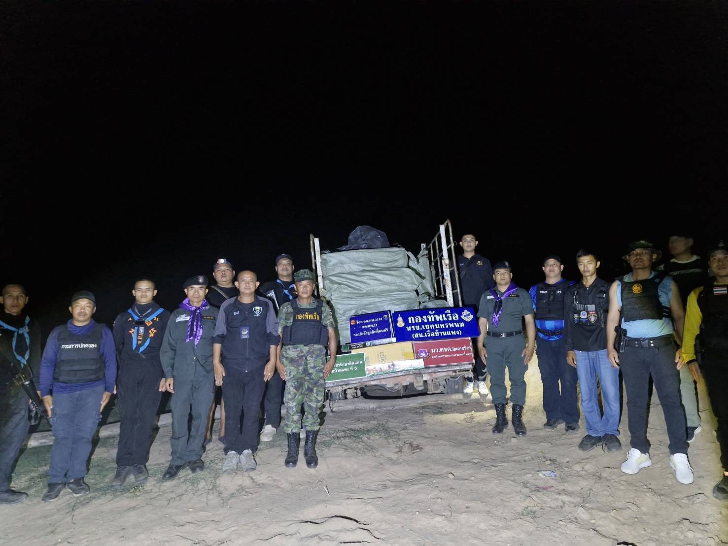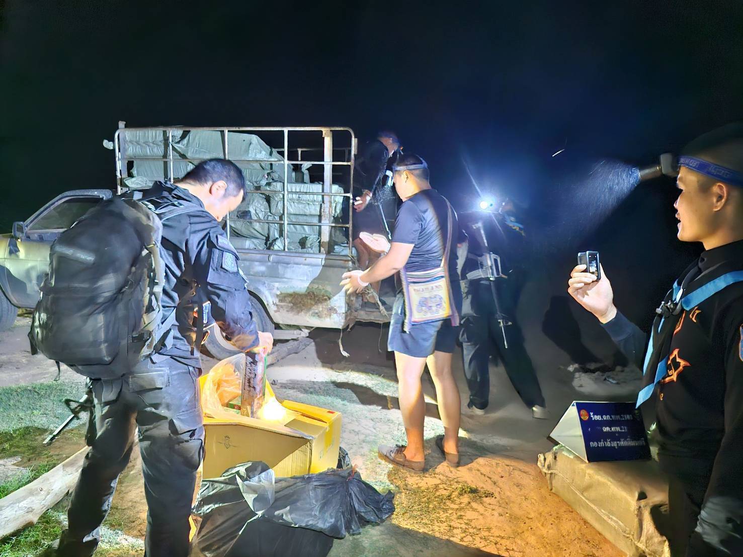 โดยเจ้าหน้าที่ได้ซุ่มตรวจบริเวณพื้นที่เสี่ยง ก่อนพบรถกระบะต้องสงสัยไม่ติดแผ่นป้ายทะเบียน จอดริมแม่น้ำโขง และมีกลุ่มบุคคลกำลังลำเลียงสิ่งของขึ้นรถ