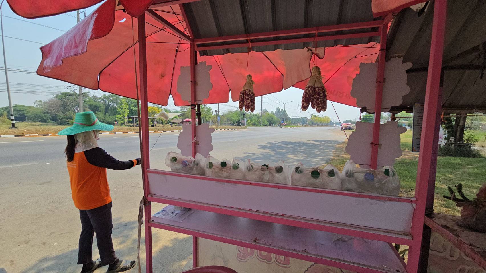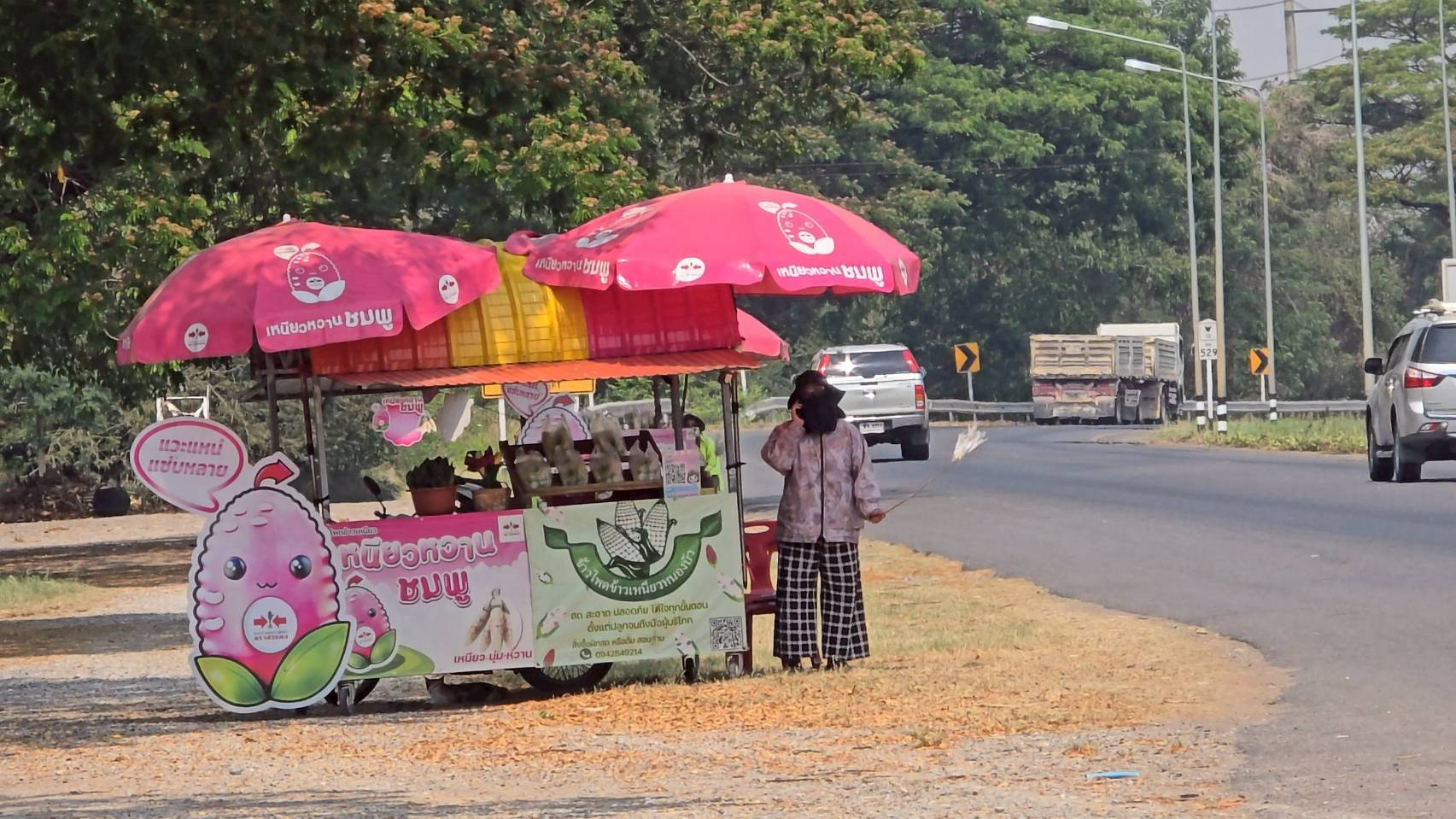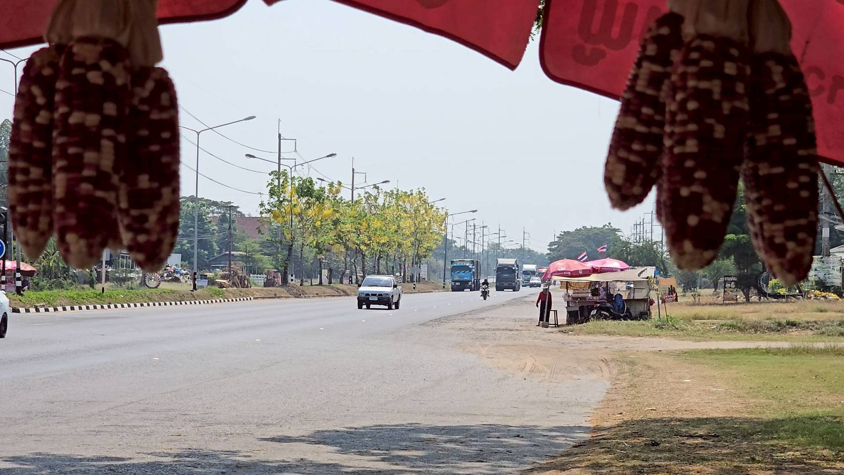 บรรยากาศการค้าขายข้าวโพดริมถนนมะลิวัลย์ พื้นที่บ้านหนองบัว อำเภอบ้านฝาง จังหวัดขอนแก่น