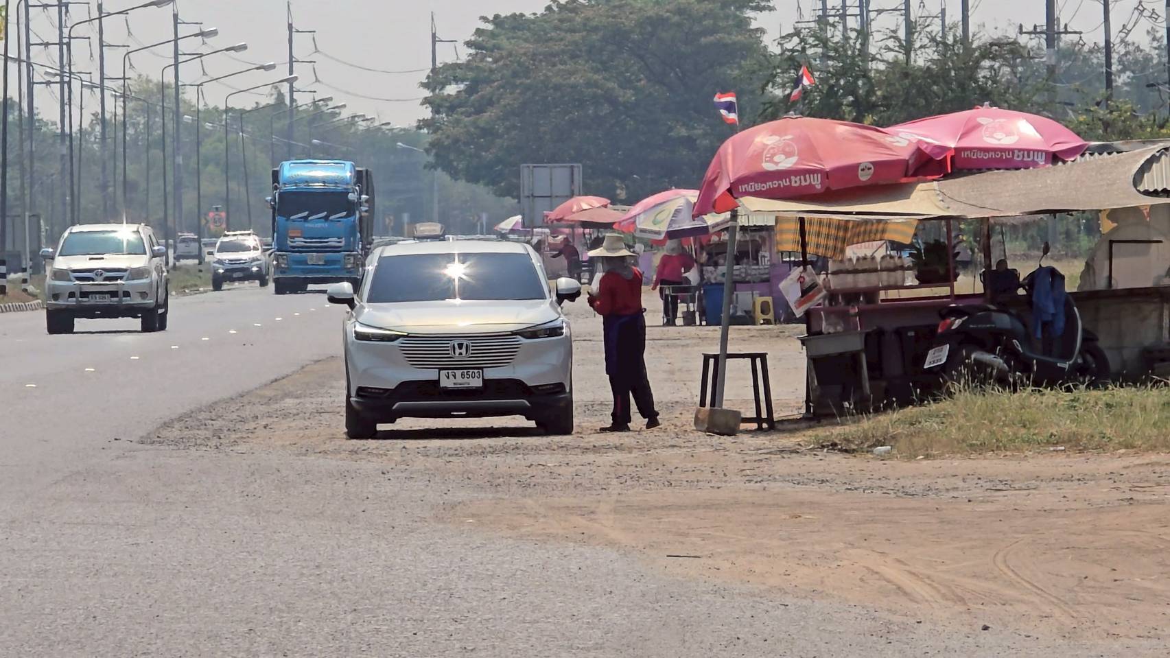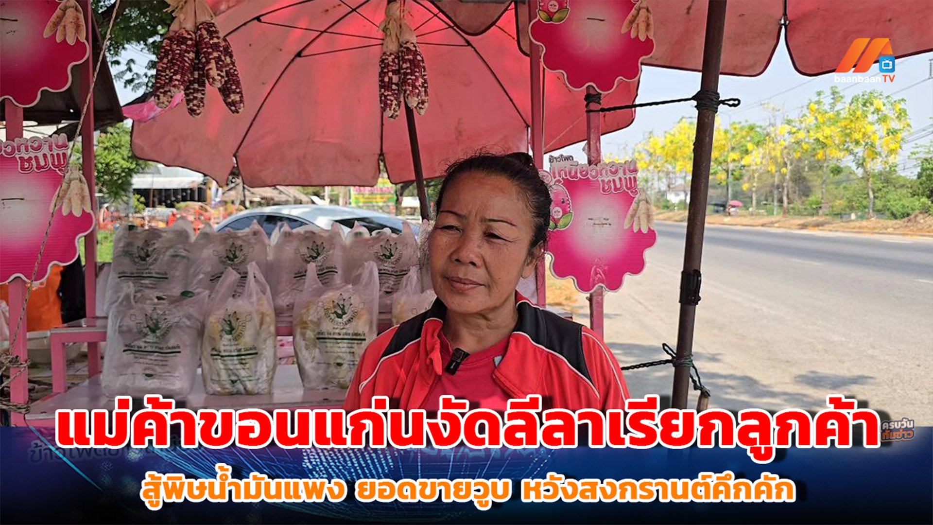 แม่ค้าขอนแก่นสู้แดดโบกเรียกลูกค้า ยอดขายวูบจากน้ำมันแพง ลุ้นสงกรานต์ฟื้นตัว