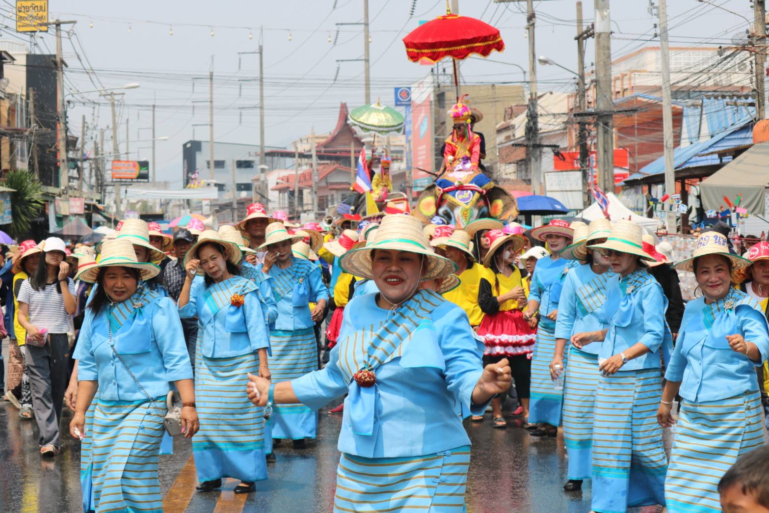 ตลอดเส้นทาง ชาวบ้านยังร่วมสาดน้ำและให้อาหารช้าง เพื่อช่วยคลายร้อน และสร้างสีสันให้กับงาน