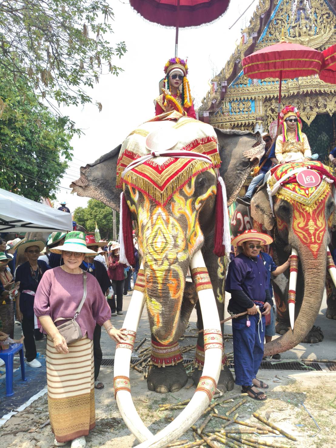 โดยปีนี้มีช้างเข้าร่วมขบวนแห่จำนวน 18 เชือก พร้อมนาคที่แต่งกายสีสันสดใส นั่งบนหลังช้างอย่างสง่างาม