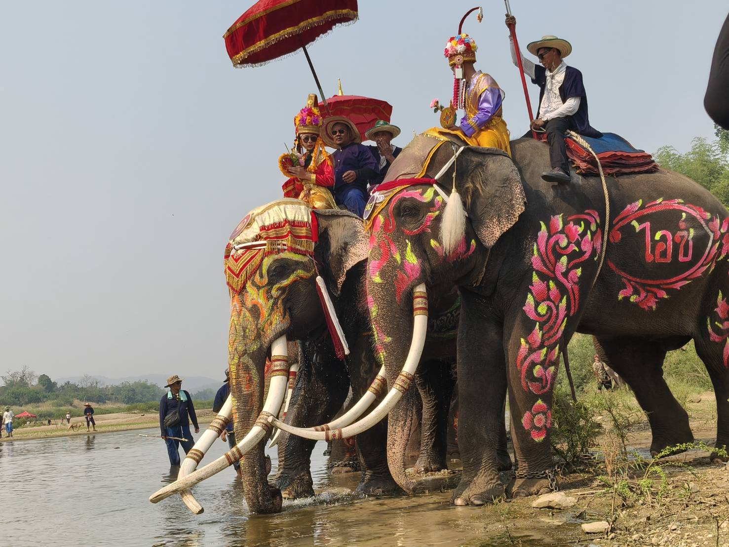 และประชาชนที่ออกมาร่วมเต้นรำอย่างสนุกสนาน ก่อนถึงช่วงไฮไลต์สำคัญ คือการที่ช้างเดินลุยข้ามแม่น้ำยม
