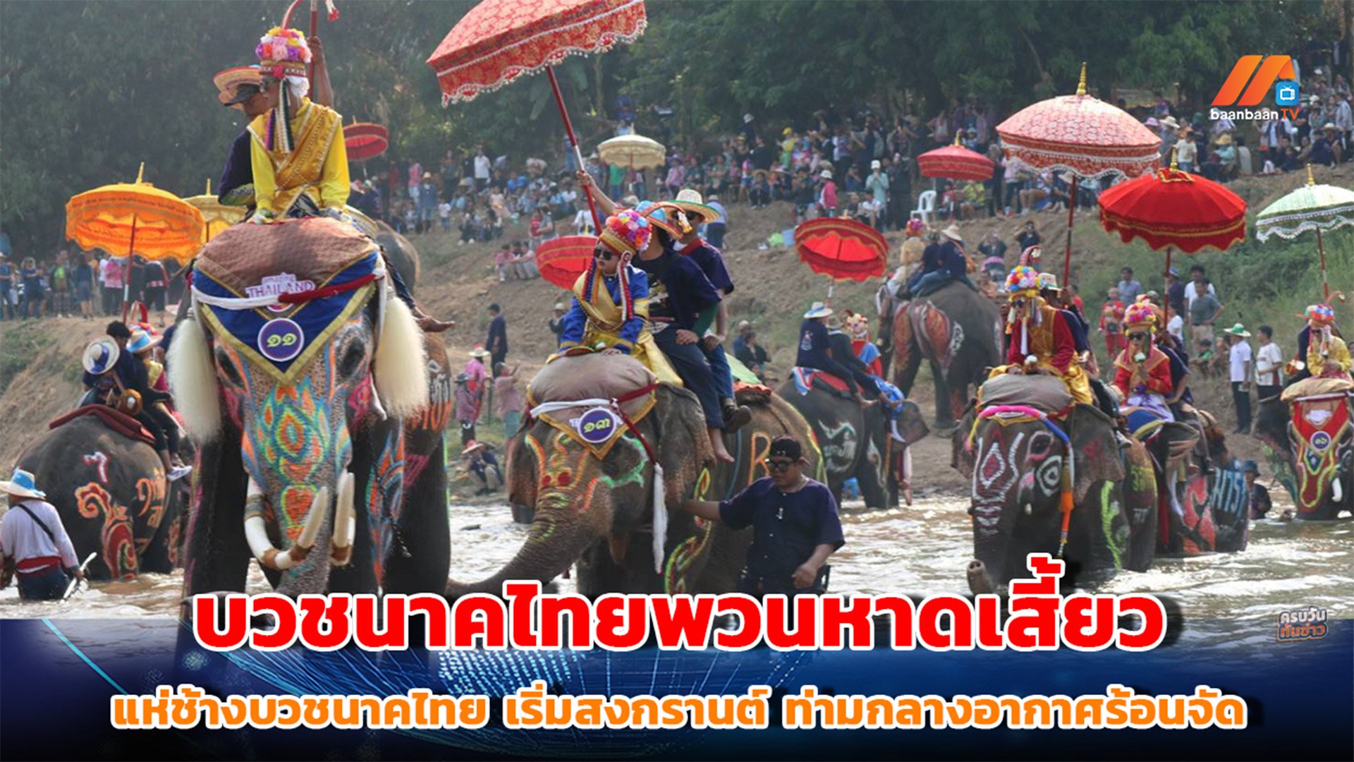 สุโขทัยคึกคัก! แห่ช้างบวชนาคไทยพวนหาดเสี้ยว เริ่มสงกรานต์ ท่ามกลางอากาศร้อนจัด