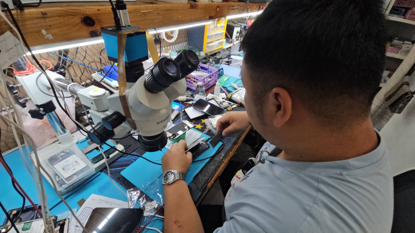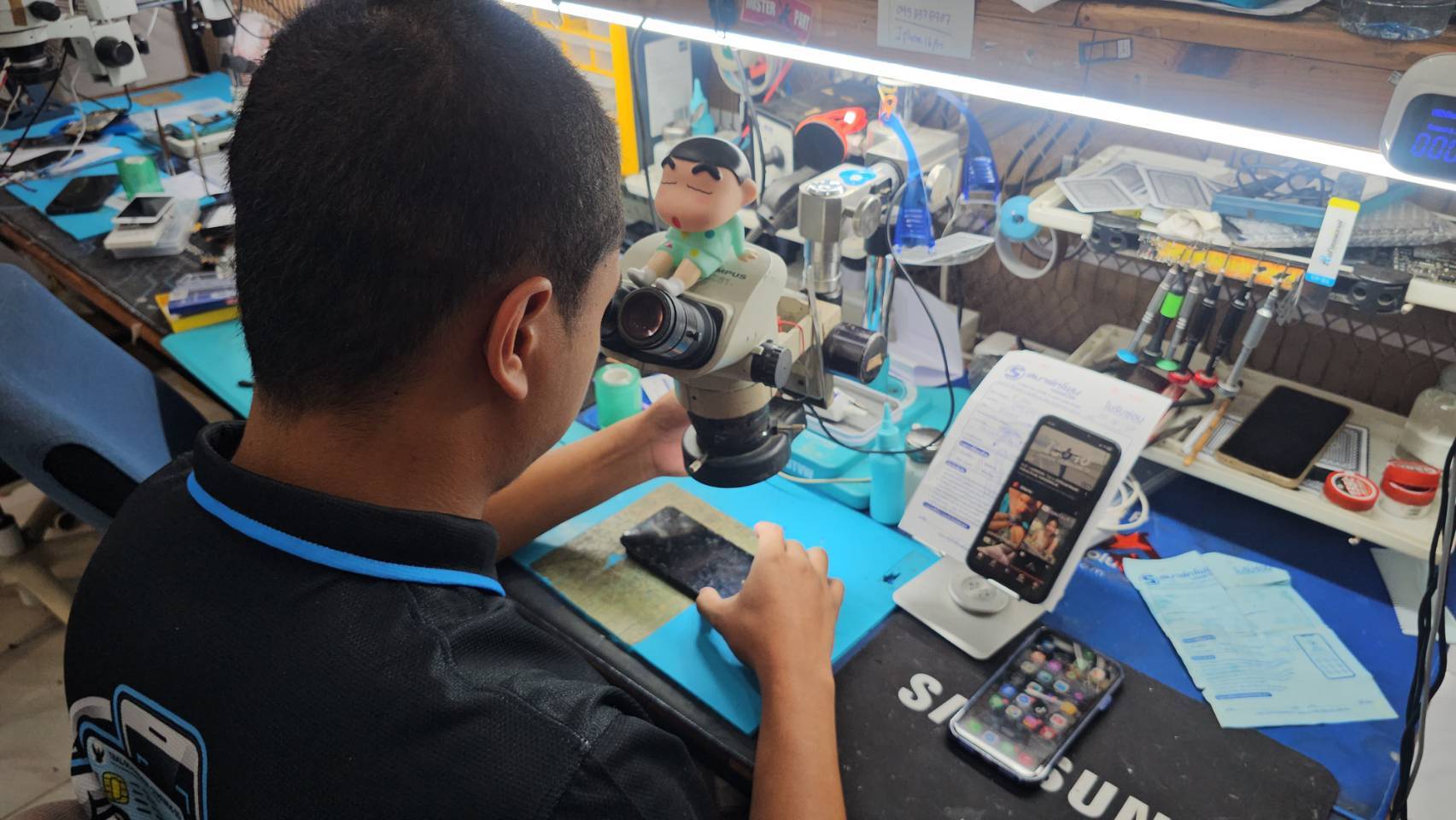 แต่ไม่ใช่แค่แหล่งท่องเที่ยวหรือถนนสายหลักเท่านั้น เพราะร้านซ่อมโทรศัพท์มือถือหลายแห่งมีลูกค้าแน่นตลอดทั้งวัน