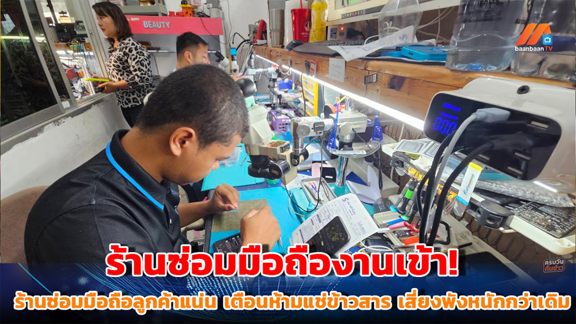 ผู้สื่อข่าวลงพื้นที่ร้านซ่อมมือถือชื่อดัง พบว่ามีลูกค้าทยอยเข้ามาใช้บริการไม่ขาดสาย