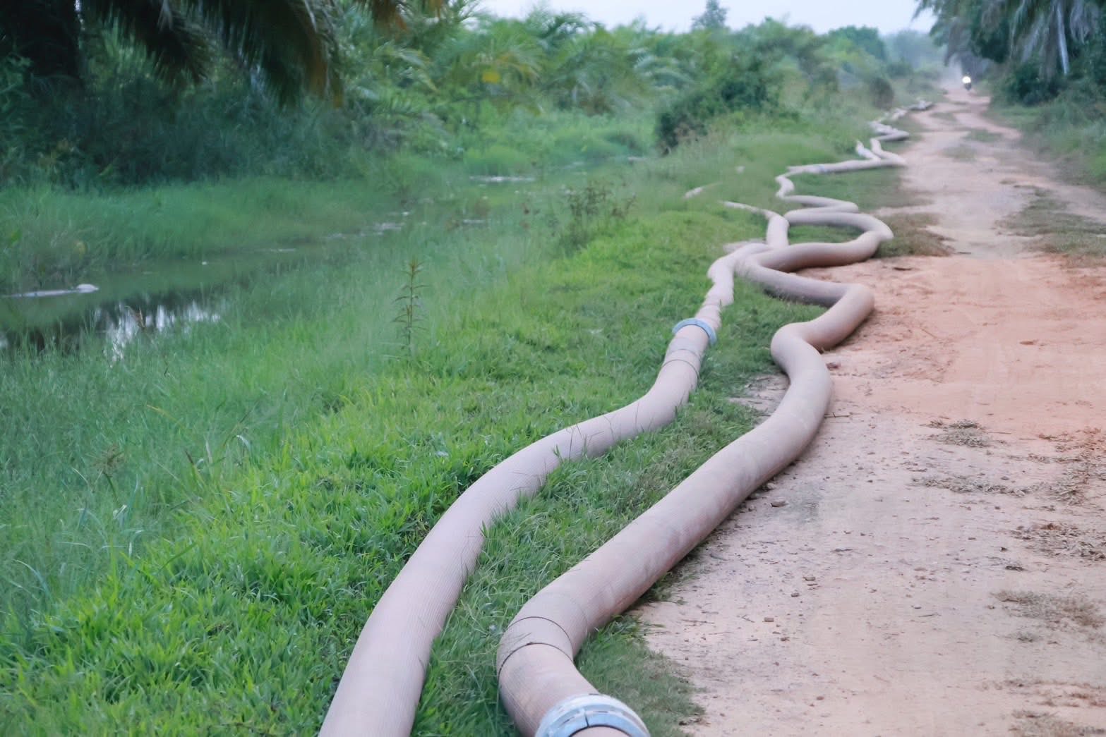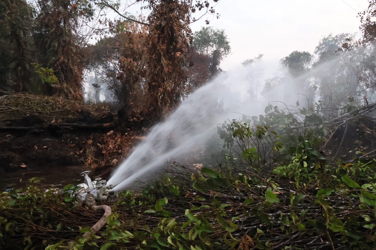 นอกจากนี้ ยังมีการนำเครื่องสูบน้ำระยะไกลเข้ามาฉีดเพิ่มความชุ่มชื้นในชั้นดิน เพื่อลดความร้อนสะสมและกลุ่มควัน
