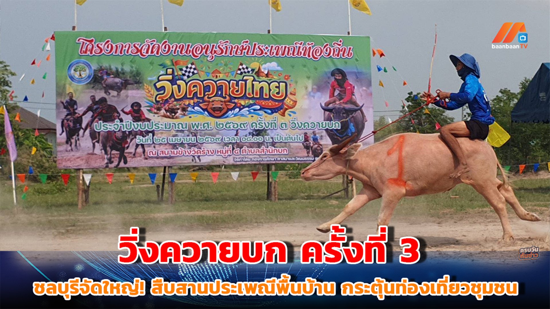 จังหวัดชลบุรี จัดงานอนุรักษ์ประเพณีท้องถิ่น “วิ่งควายไทย (วิ่งควายบก)” ประจำปี 2569 ครั้งที่ 3 อย่างคึกคัก ณ สนามข้างวัดร้าง หมู่ 4 ตำบลสำนักบก อำเภอเมืองชลบุรี