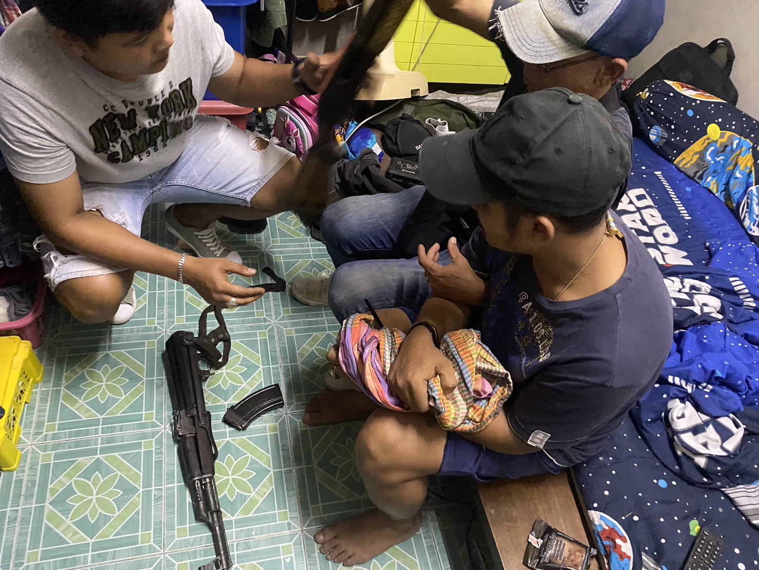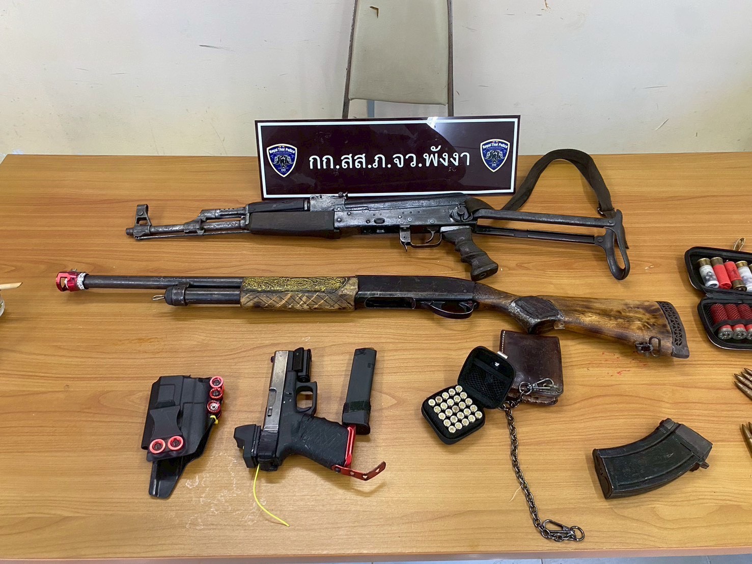 ปืนลูกซอง ปืนเล็กยาว และกระสุนอีกหลายรายการ รวมถึงอุปกรณ์เสพยาและโทรศัพท์มือถือ