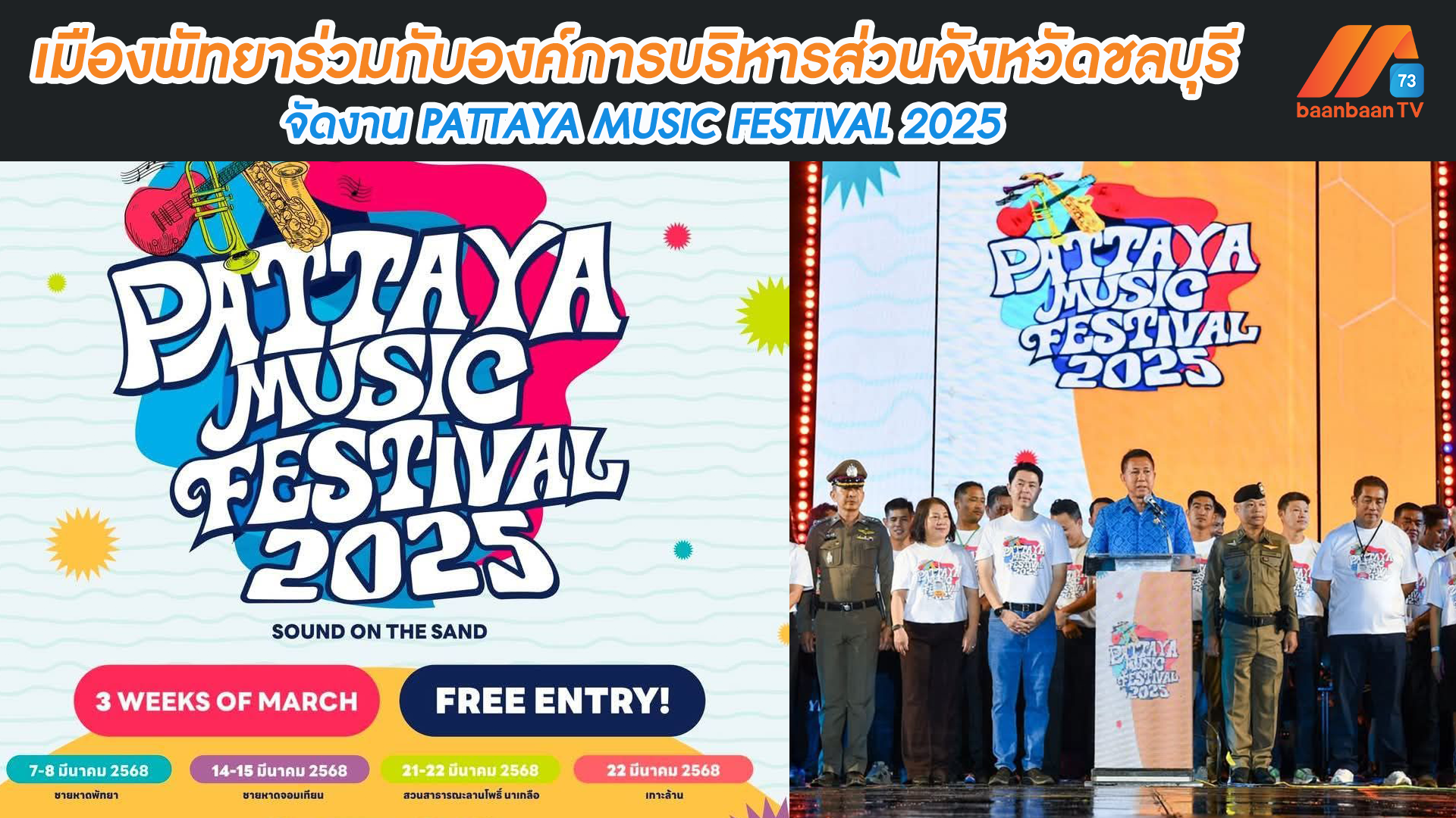 ทั้งนี้ เทศกาลดนตรี PATTAYA MUSIC FESTIVAL 2025จัดเป็นงานฟรีคอนเสิร์ตที่จัดต่อเนื่องยาวนานและใหญ่ที่สุดในประเทศไทย โดยเริ่มจัดงานตั้งแต่ปี 2545จนถึงปัจจุบันมีอัตลักษณ์ที่โดดเด่น Sound on theSand หรือเสียงเพลงบนผืนทรายผสมผสานความโมเดิร์นของเทศกาลดนตรีริมชายหาดที่ยิ่งใหญ่ที่สุดของประเทศไทย กับอัตลักษณ์ของพัทยาที่ชัดเจนในความเป็นเมืองท่องเที่ยวทางทะเลที่สวยติดอันดับโลก