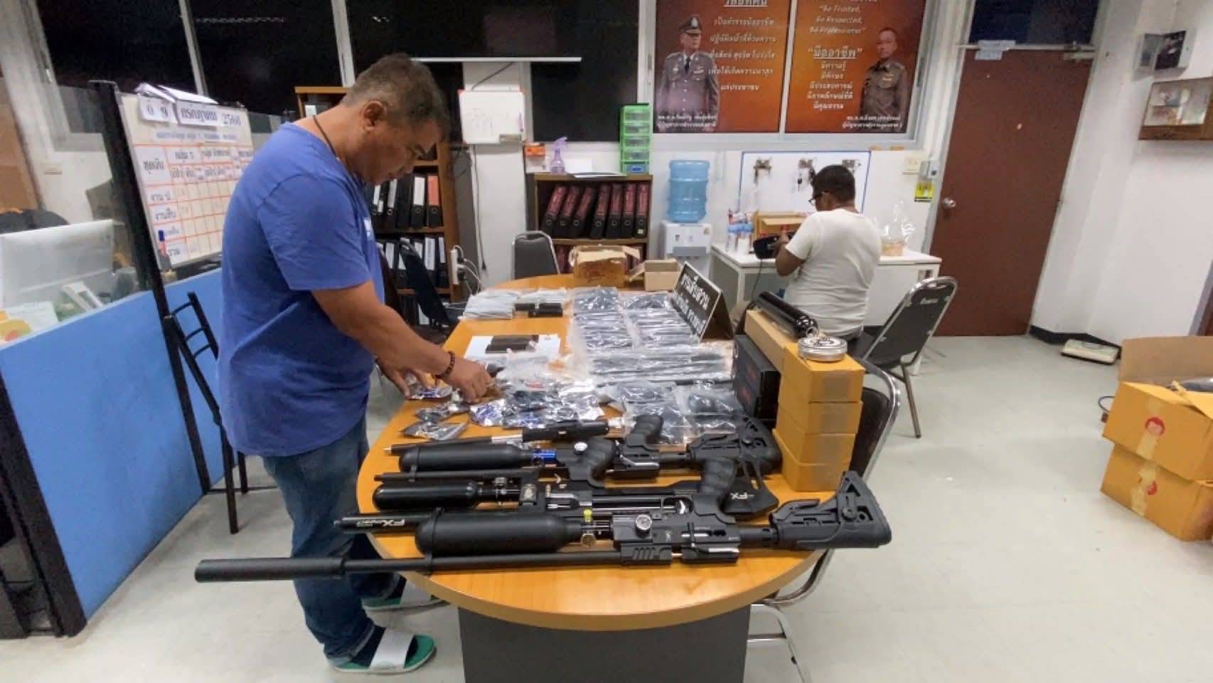 ผู้ต้องหา อายุ 44 ปี รับสารภาพว่า สั่งซื้อและผลิตชิ้นส่วนเอง ก่อนประกอบเป็นปืนอัดลมขายออนไลน์
