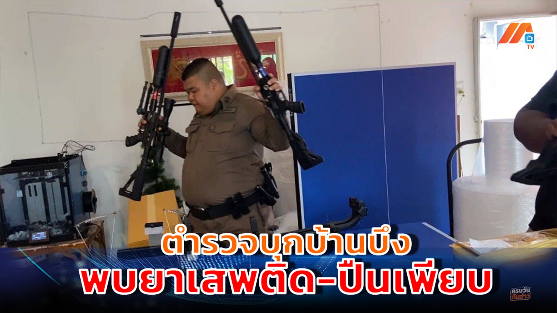 ตร.บ้านบึงบุกค้นบ้าน พบโรงงานลับผลิตปืนอัดลม-ยึดยาเสพติด