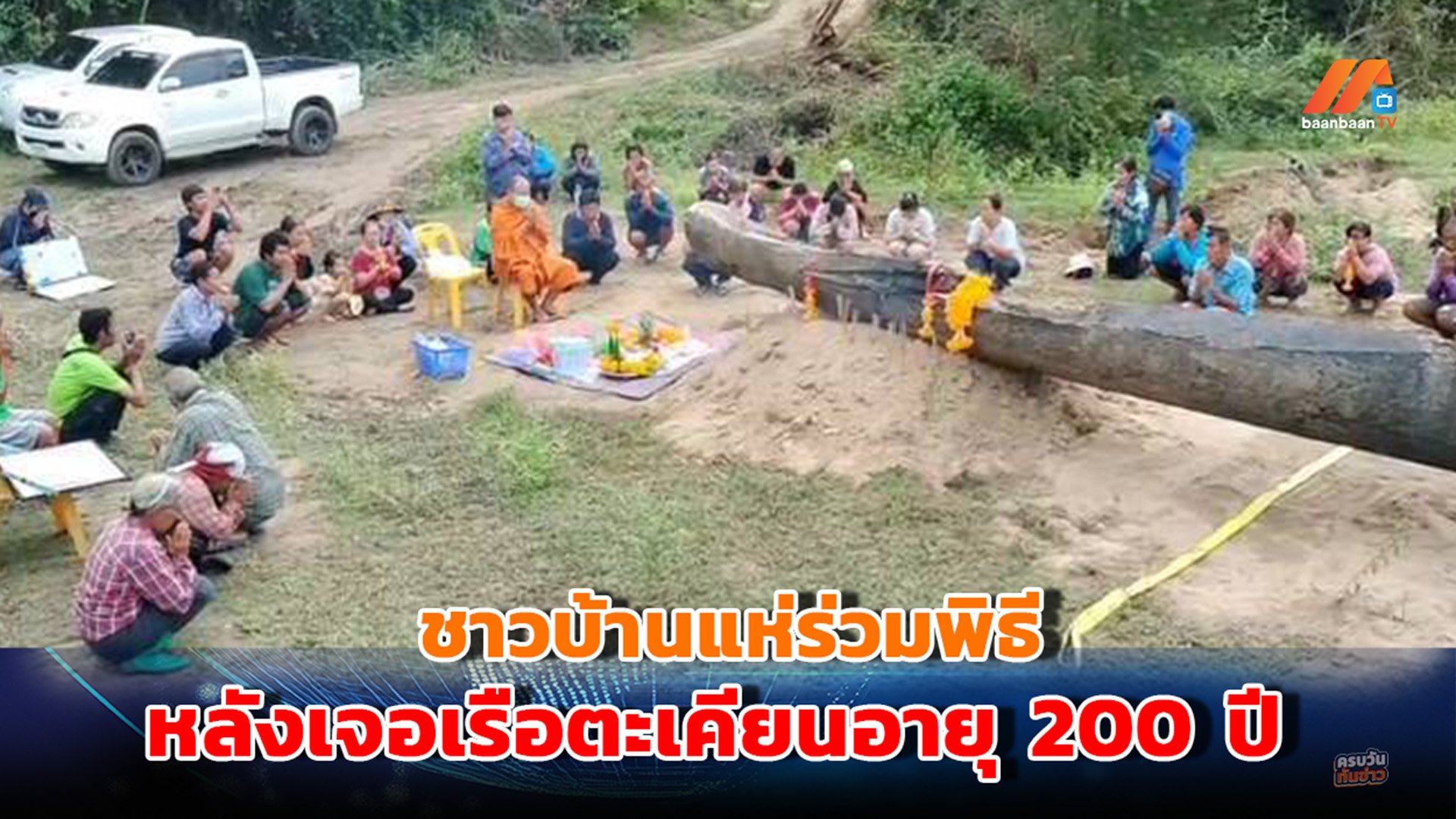 เจอเรือตะเคียนอายุ 200 ปี ชาวบ้านแห่ร่วมพิธี ขอเลขเด็ดคึกคัก
